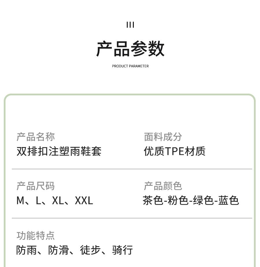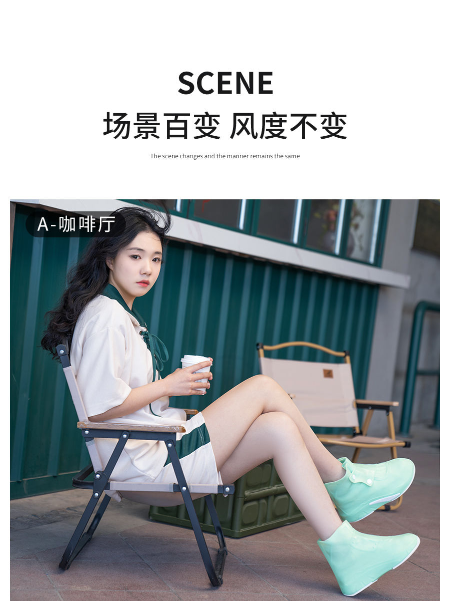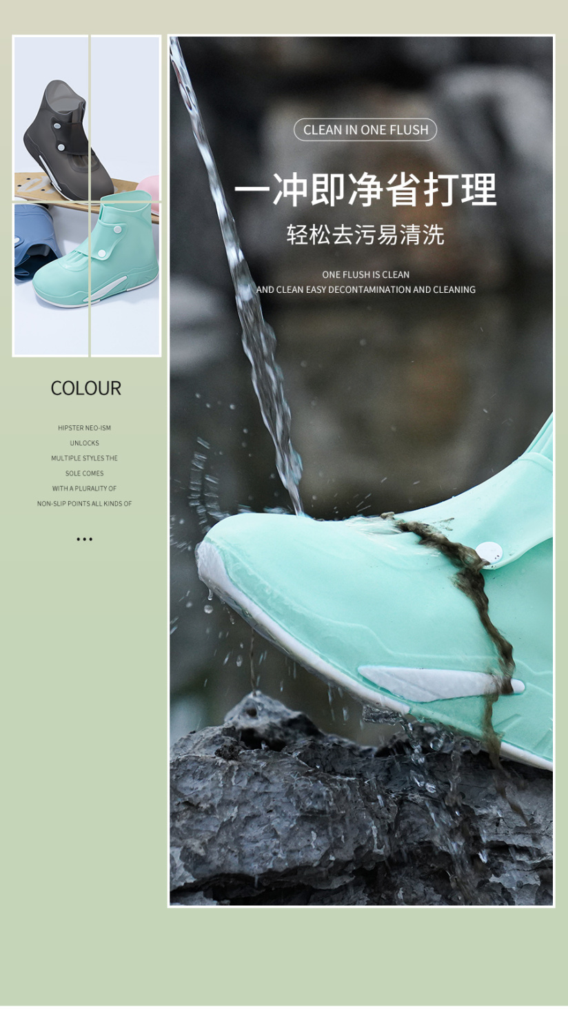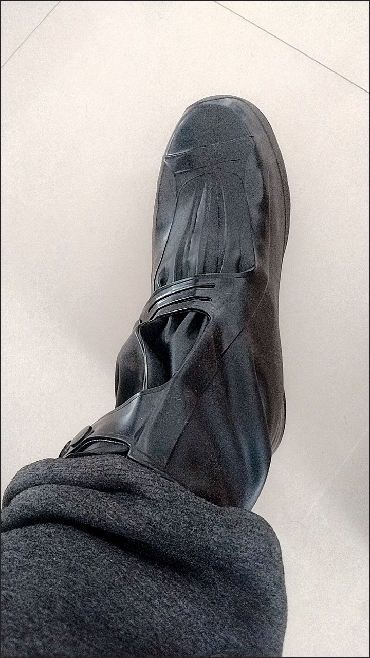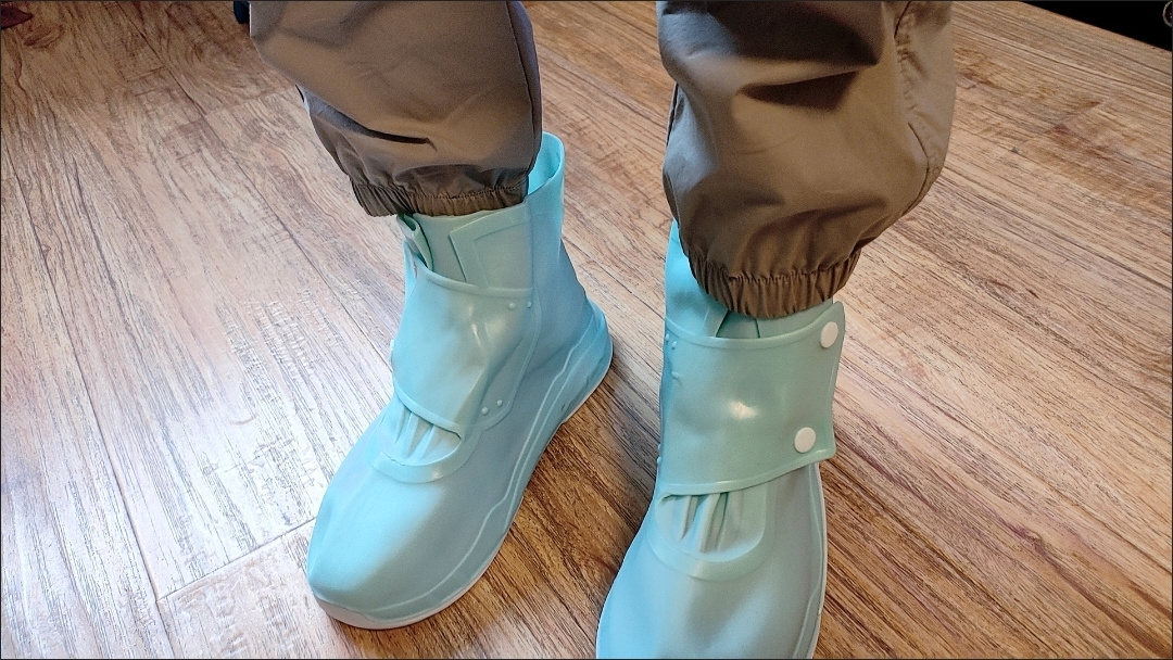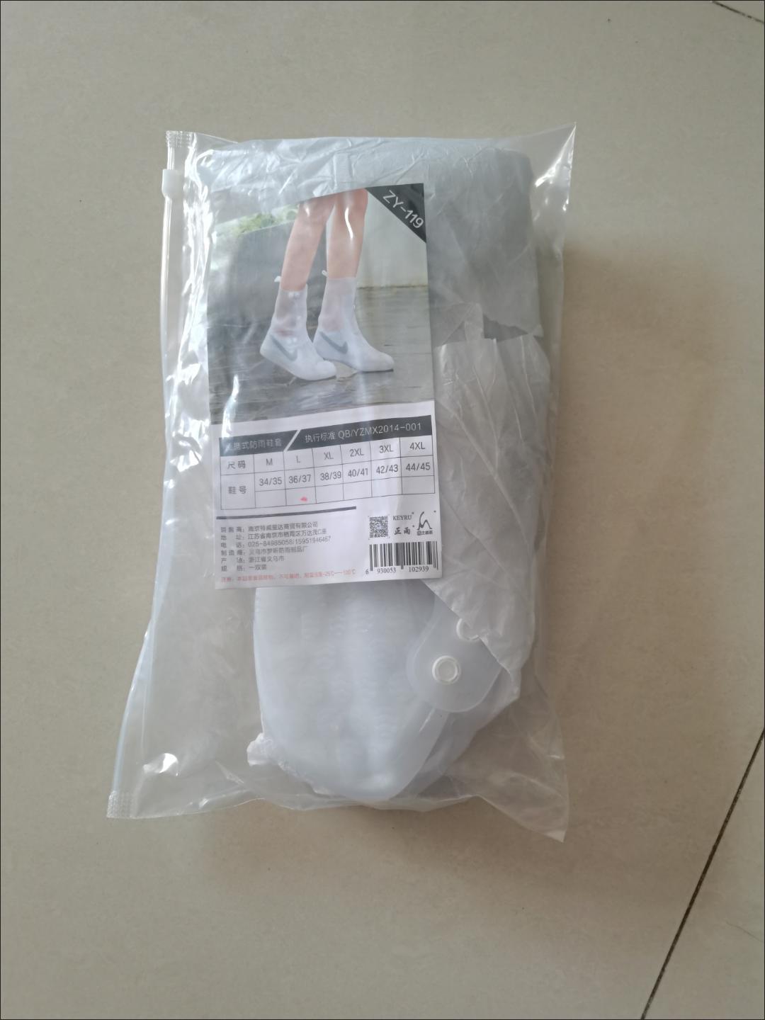 鞋码标准合适,颜色也正,鞋套材质也很厚实,有弹力,鞋口有摁扣,易穿易脱,穿上走路也很舒服,防雨效果用后再来评价!