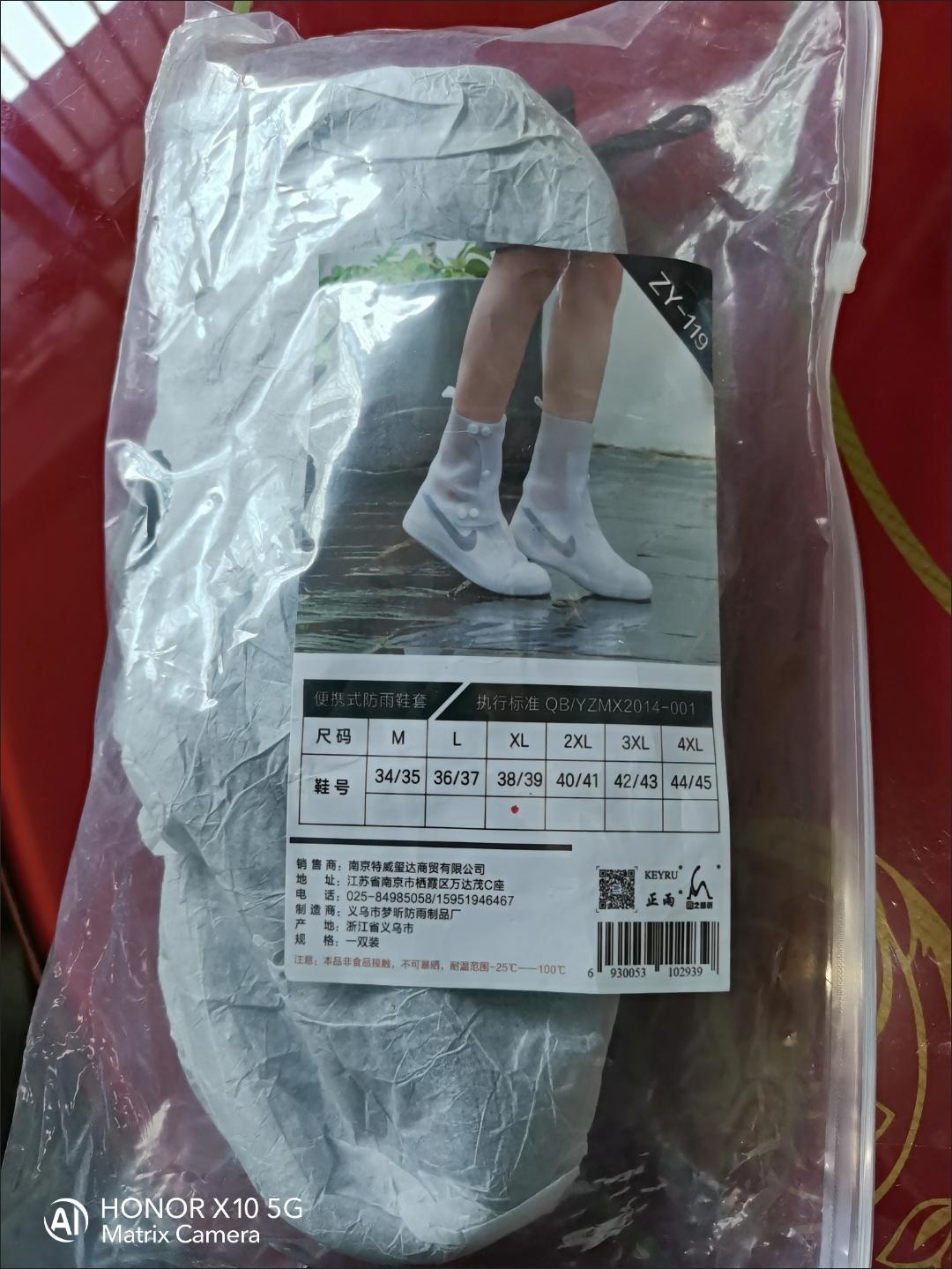 宝贝收到了。包装完好无损。质量很好。有弹性。下雨鞋子不会湿了。尺码标准。轻薄方便性价比高。祝老板生意兴隆。