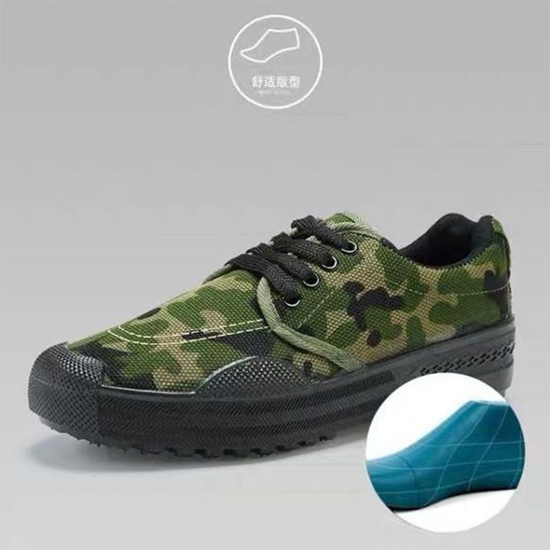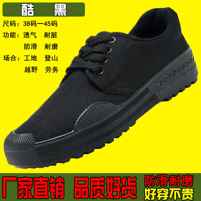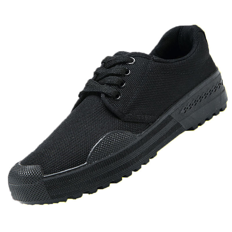 jiefang shoes men's construction site wear-resistant, non-slip, breathable low-top canvas labor protection work dad driving shoes [low-top non-slip rubber sole] cool black +36【length 230】