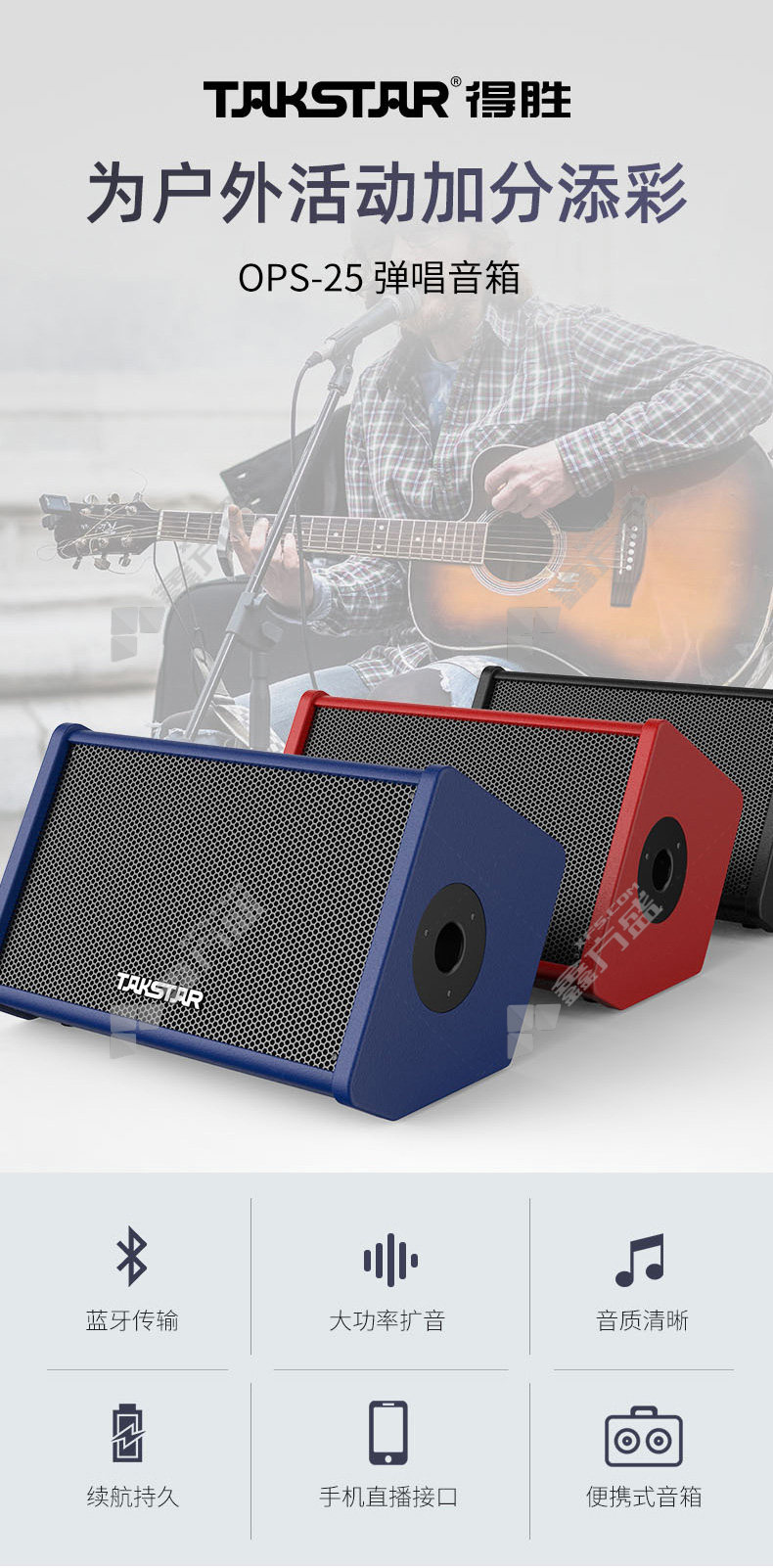 win OPS-25 portable playing and singing bluetooth speaker guitar street outdoor live performance with effect portable speaker dark blue guitar street outdoor live performance with effect portable speaker /red