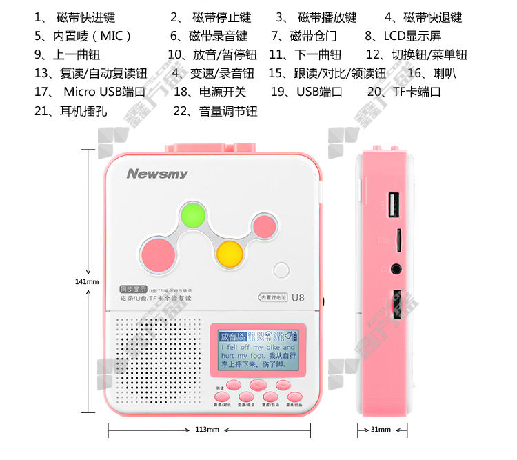 newman insert card learning repeater U8 lithium battery version pink no specifications