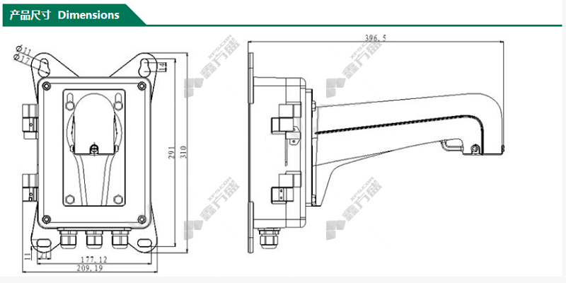 hikvision DS-1602ZJ-box dome machine bracket with power box 209.2 ×310×396.5mm no specifications