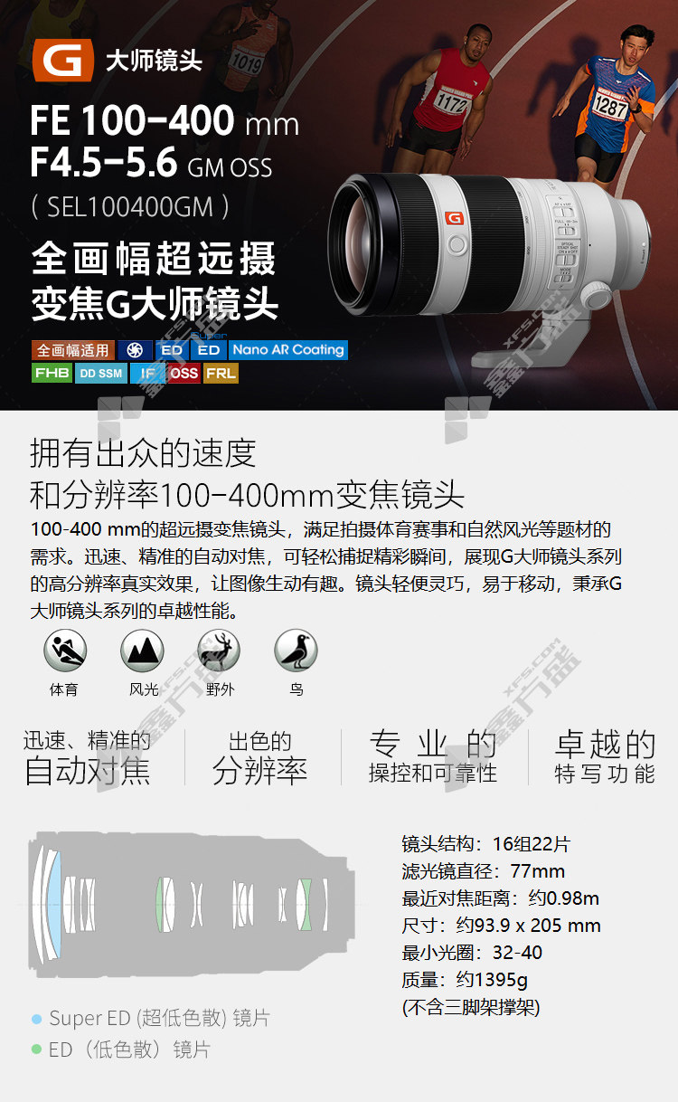 sony SEL100400GM lens FE 100-400mm F4.5–5.6 GM OSS no specifications