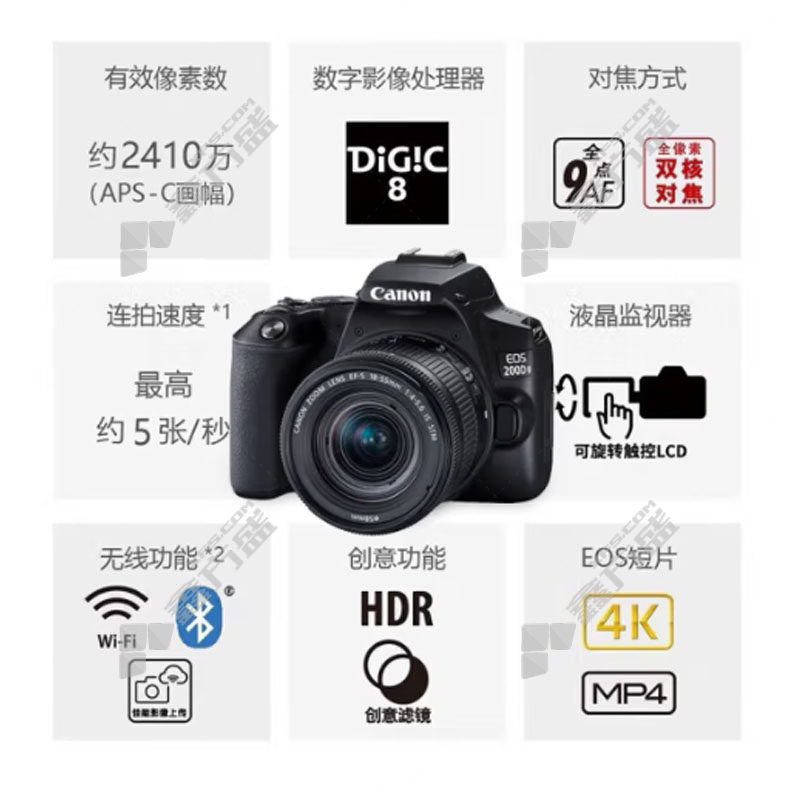 canon custom 200 d second generation 2nd generation entry-level slr camera, vlog portable home mini slr digital camera black 200 DII EF-S18-55 kit has no specifications
