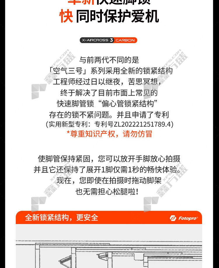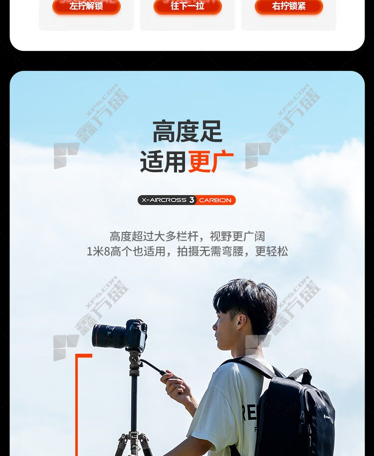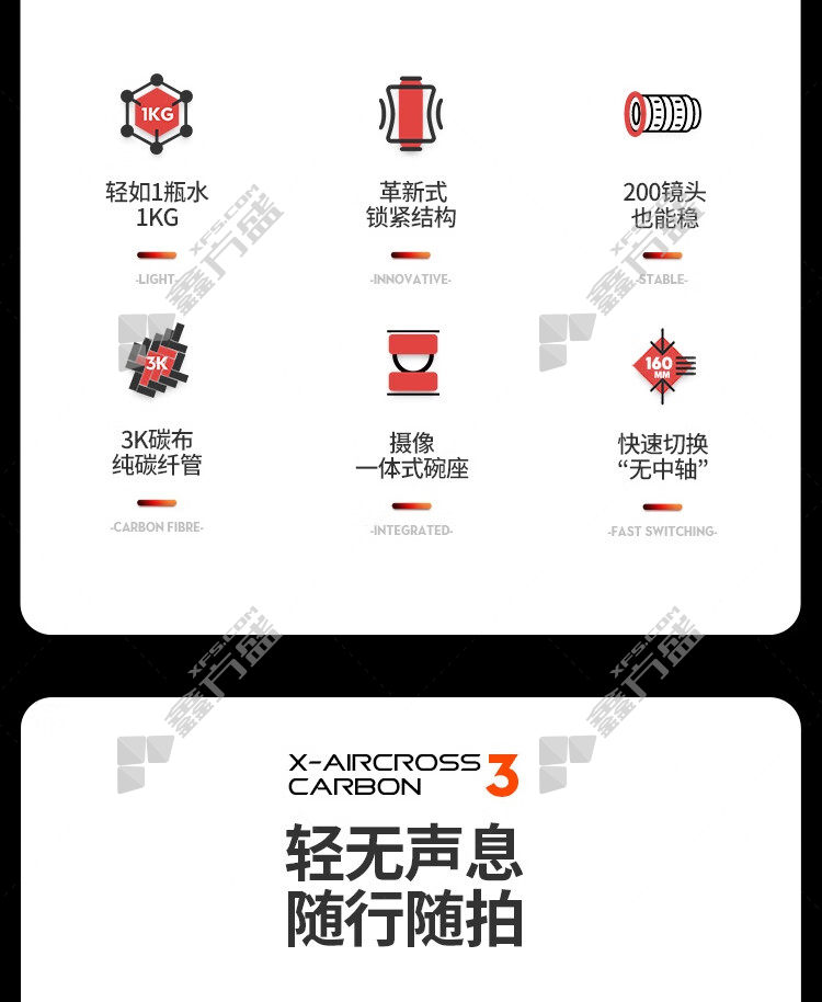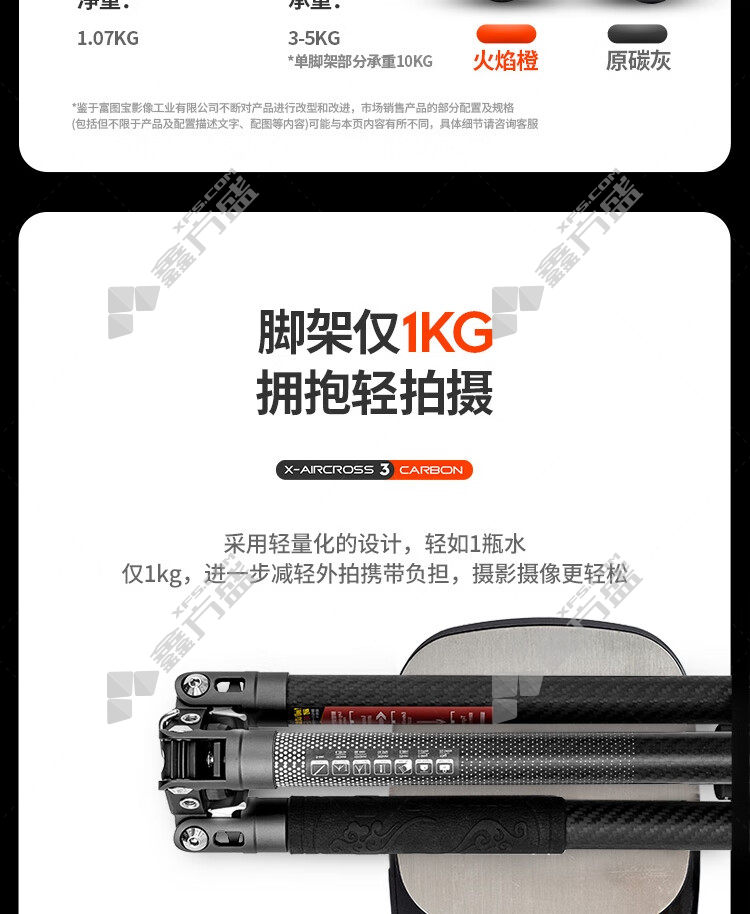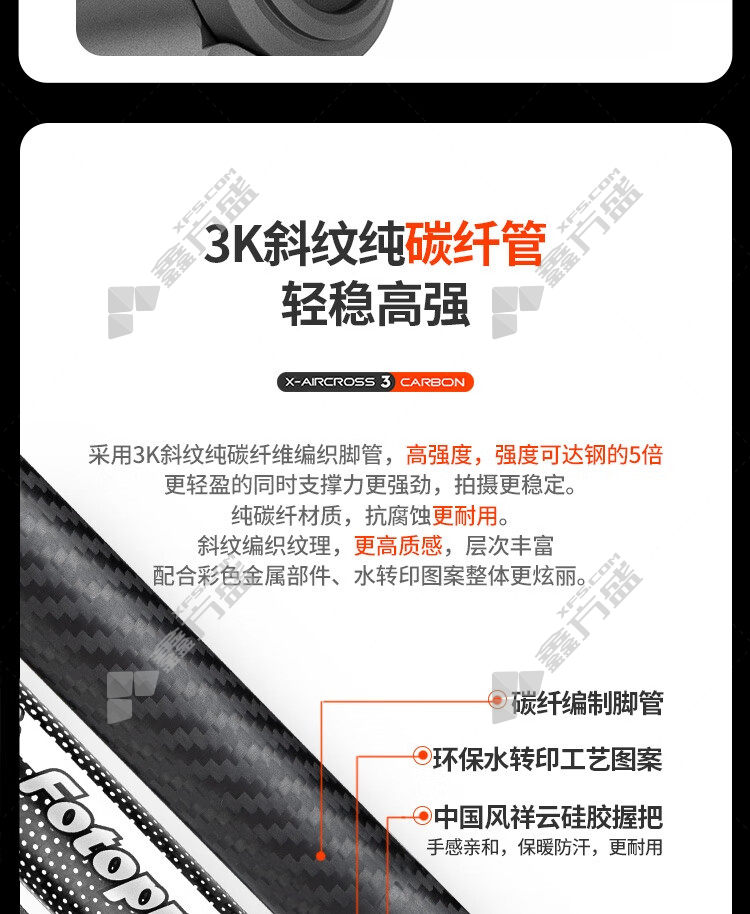 futu bao ( Fotopro) air 3 lightweight carbon fiber camera tripod original carbon gray including mobile phone clip X-Aircross 3C no specifications