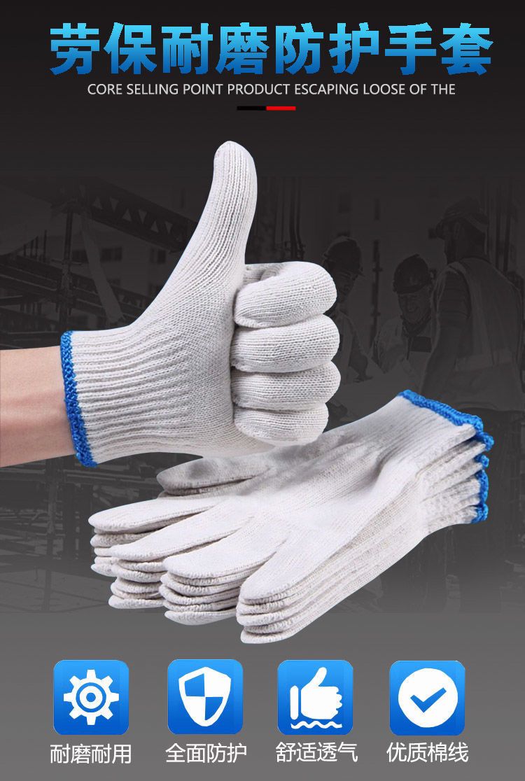 这全棉手套不错,保护效果好,透气性強,价廉物美,48只等于24双,12元都不到,不到5角钱1付,太值了,谢商铺老板了,手套还是曼结实耐用的,下次还来。