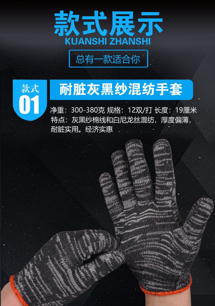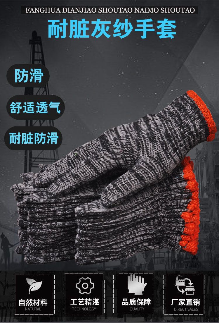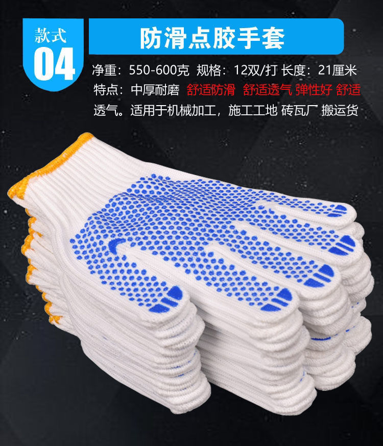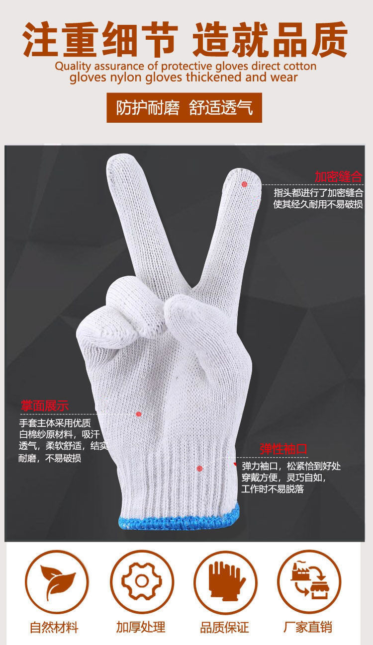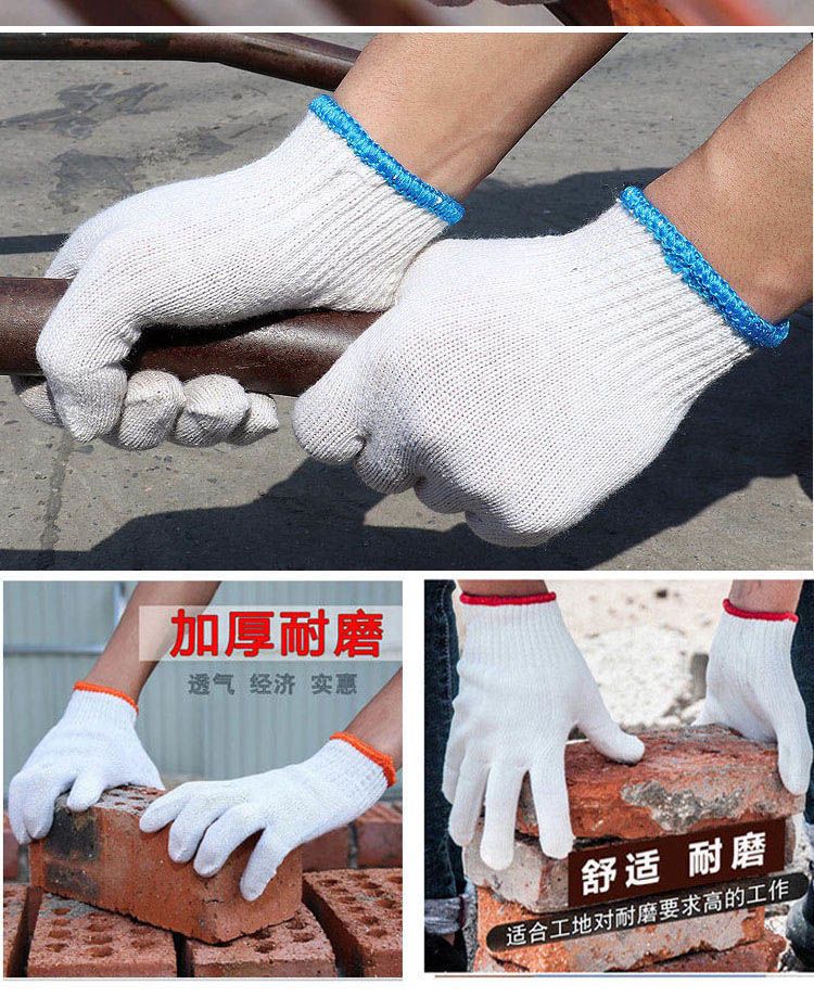 labor protection gloves wholesale wear-resistant white nylon thick non-slip cotton thread cotton yarn men's car repair site work white thread gloves thin black and gray +24double (48 pieces)