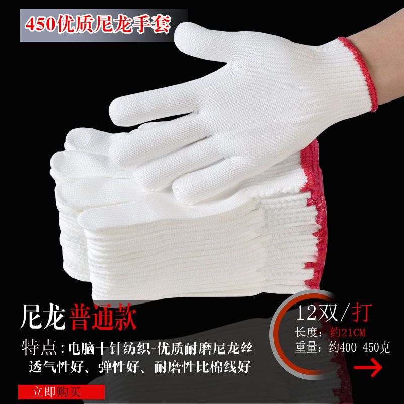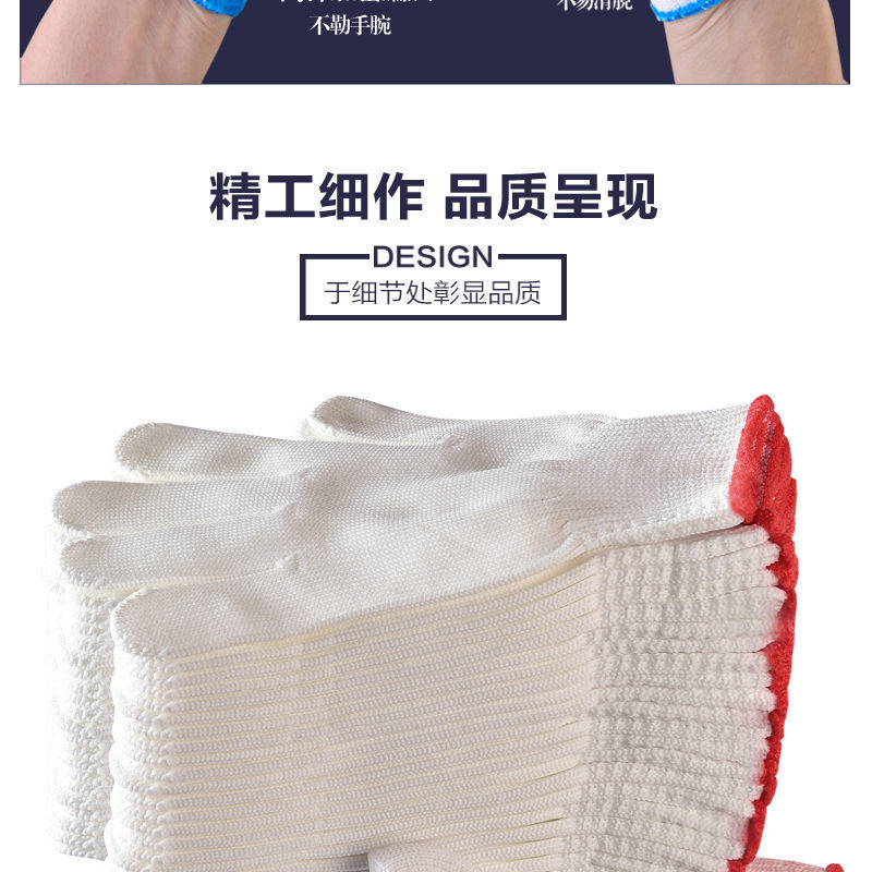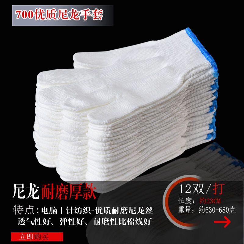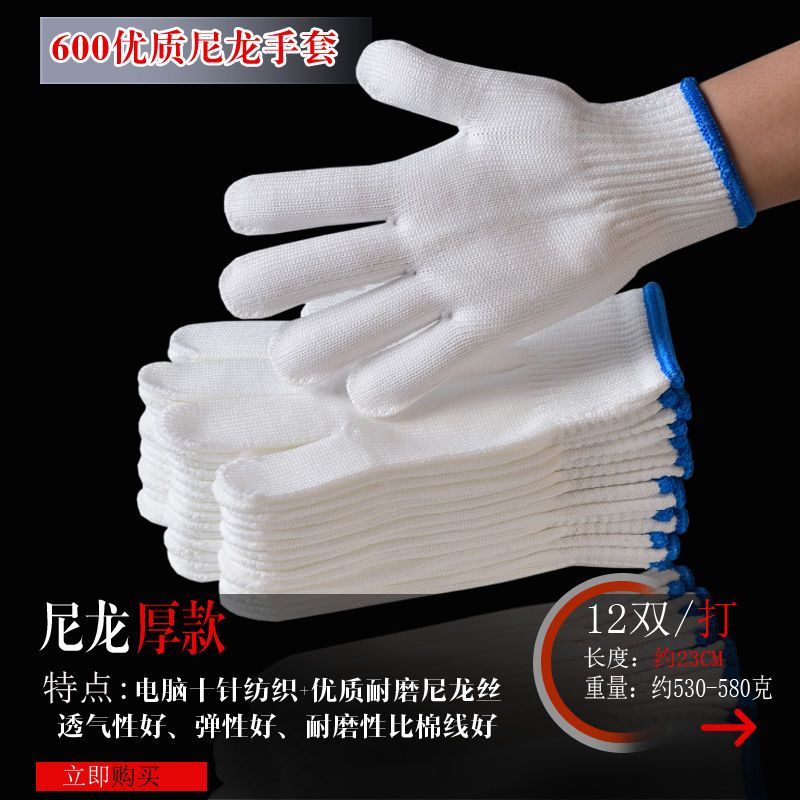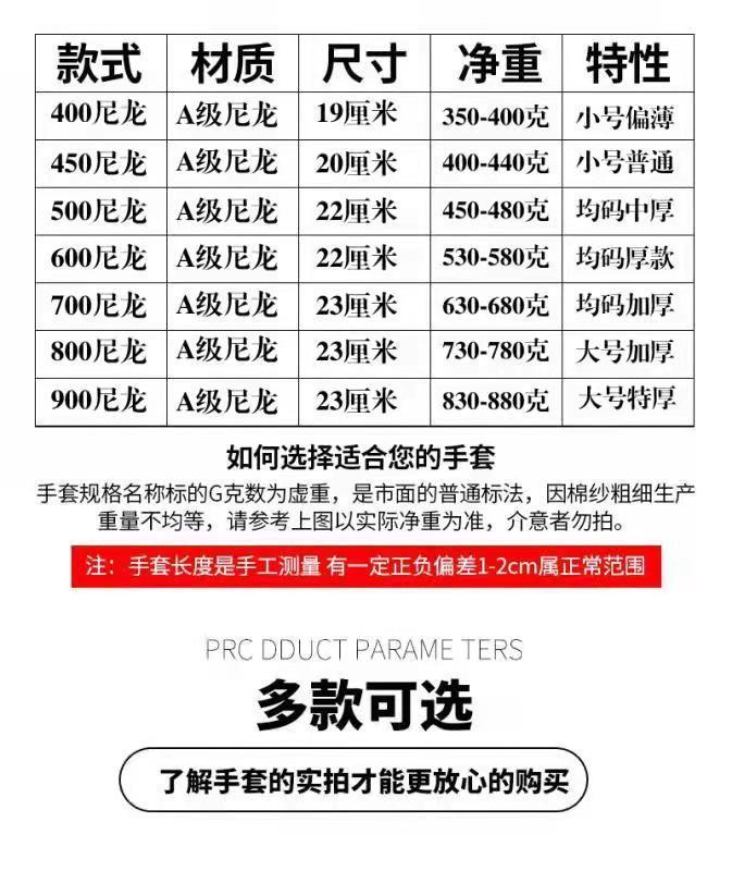 尼龙手套收到好几天了,手套材质很好,做工也很精细,戴上很舒适,以前买的带胶手套磨手,棉线的又不耐磨,这个确实不错