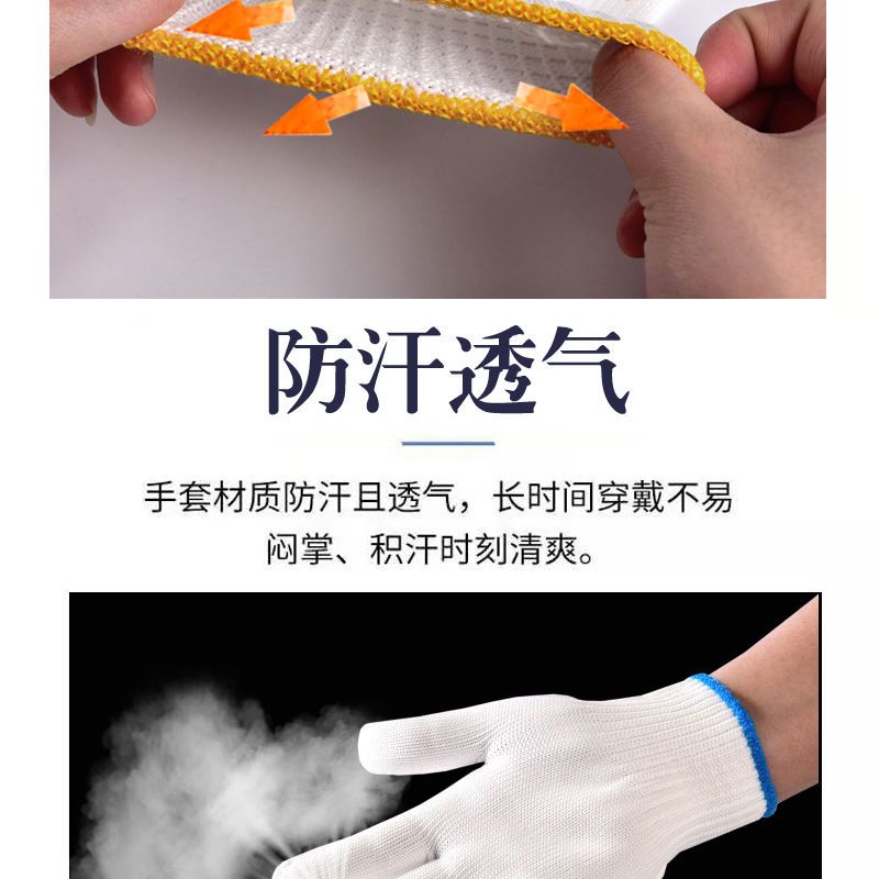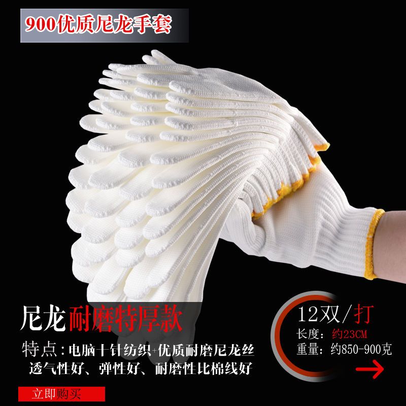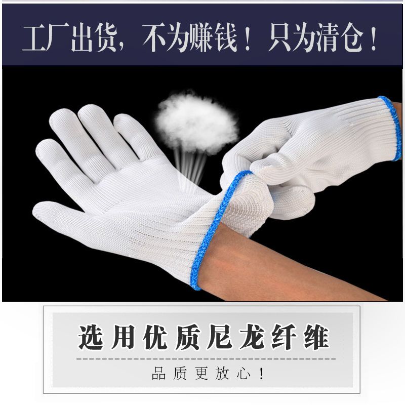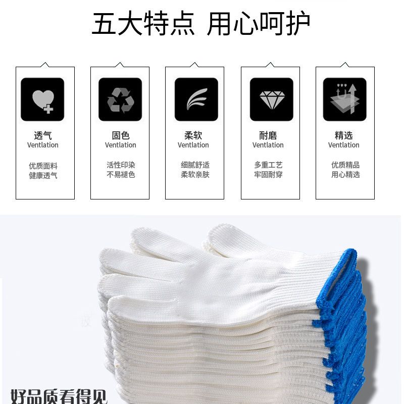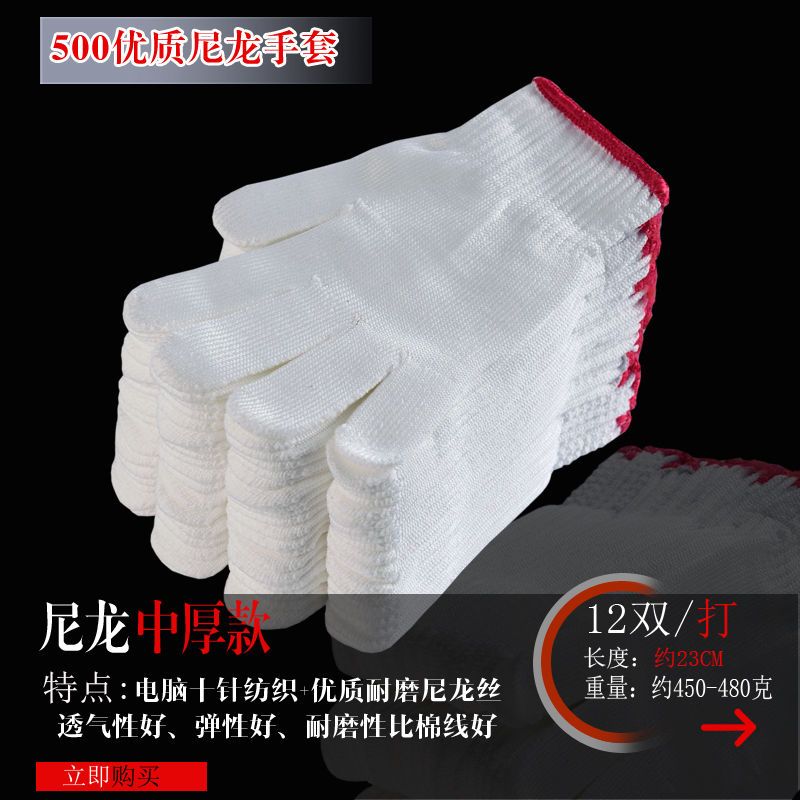 尼龙手套收到好几天了,手套材质很好,做工也很精细,戴上很舒适,以前买的带胶手套磨手,棉线的又不耐磨,这个确实不错