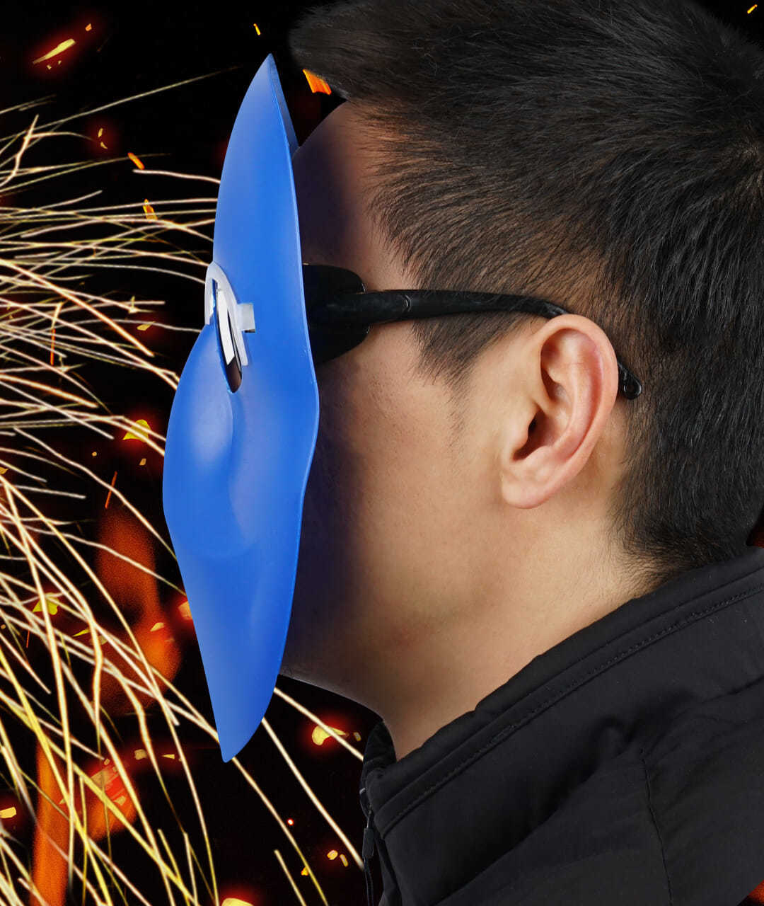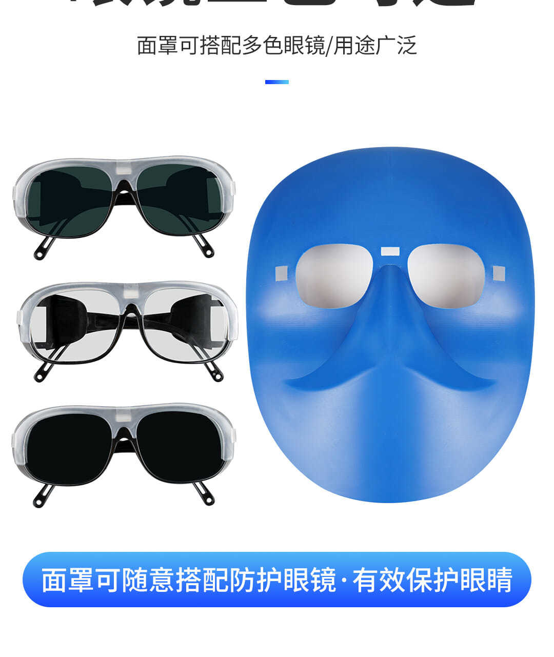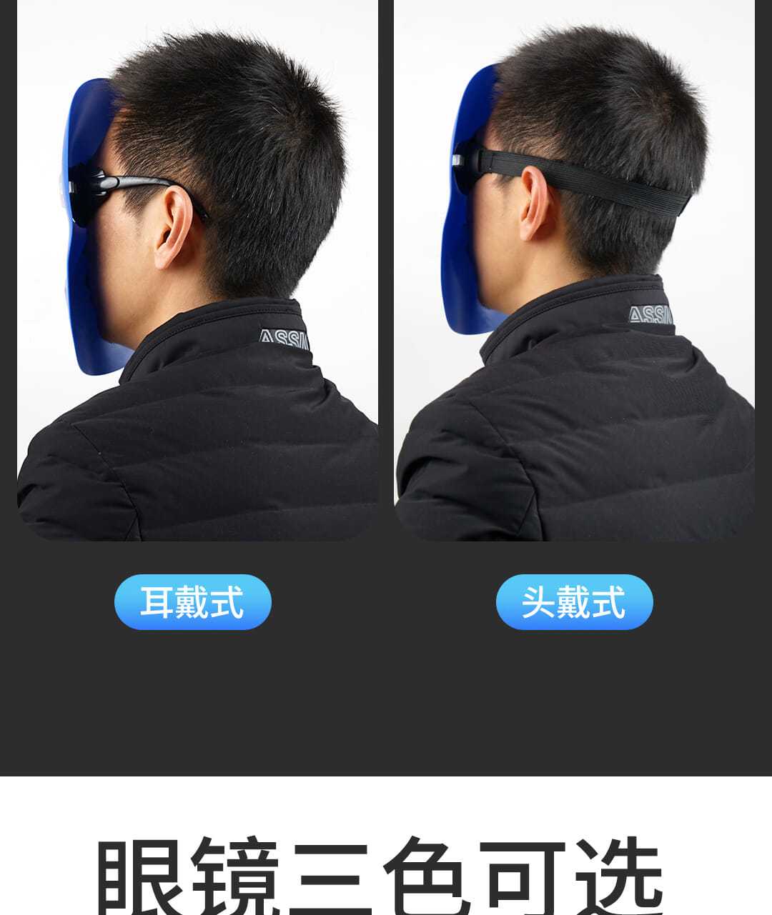 standard welding protective mask face mask welding cap head-mounted cowhide elastic band lightweight argon arc welding glasses boutique PC mask +transparent glasses +elastic band