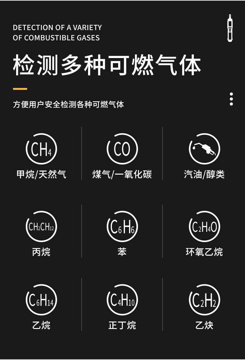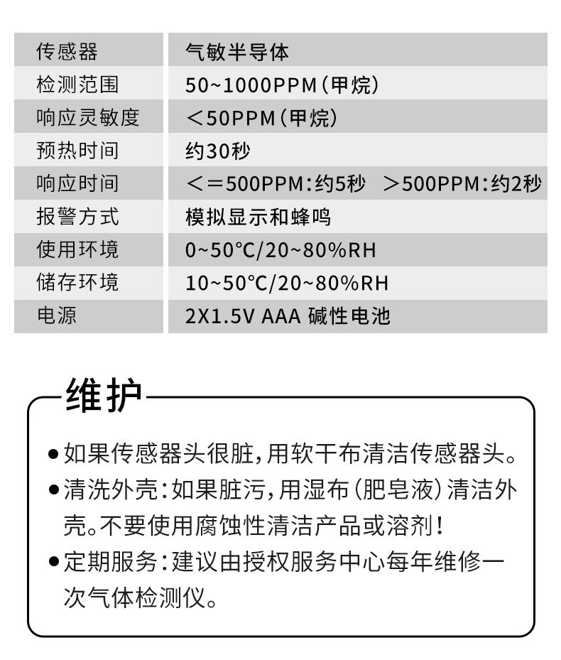 检测气体很灵敏,我在燃气灶打火前没显示有气体情况,打火关火后马上检测就亮灯报警了。等残留气体散发后再测就不报警了。为了家庭燃气安全买一个自测很方便。