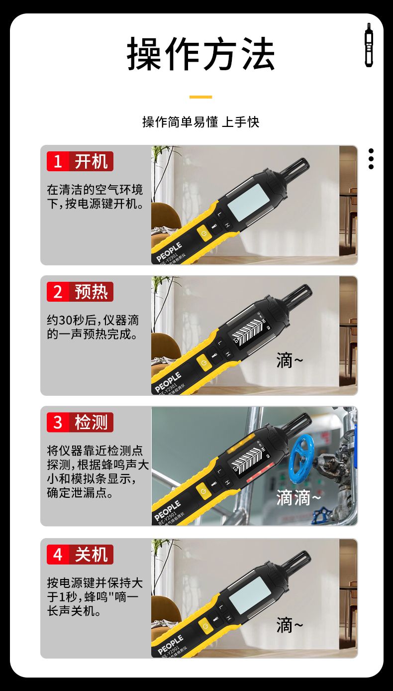人民电器气体检测仪收到。与商家描述相符。质量挺好,操作简单,是自测家庭炉灶和管道是否漏气的必备工具。商家发货快,物流也快。都给五星好评!