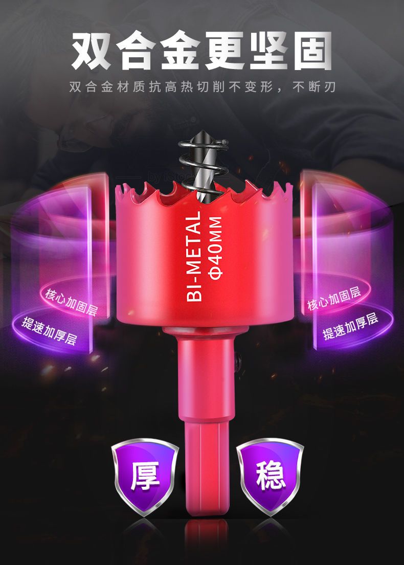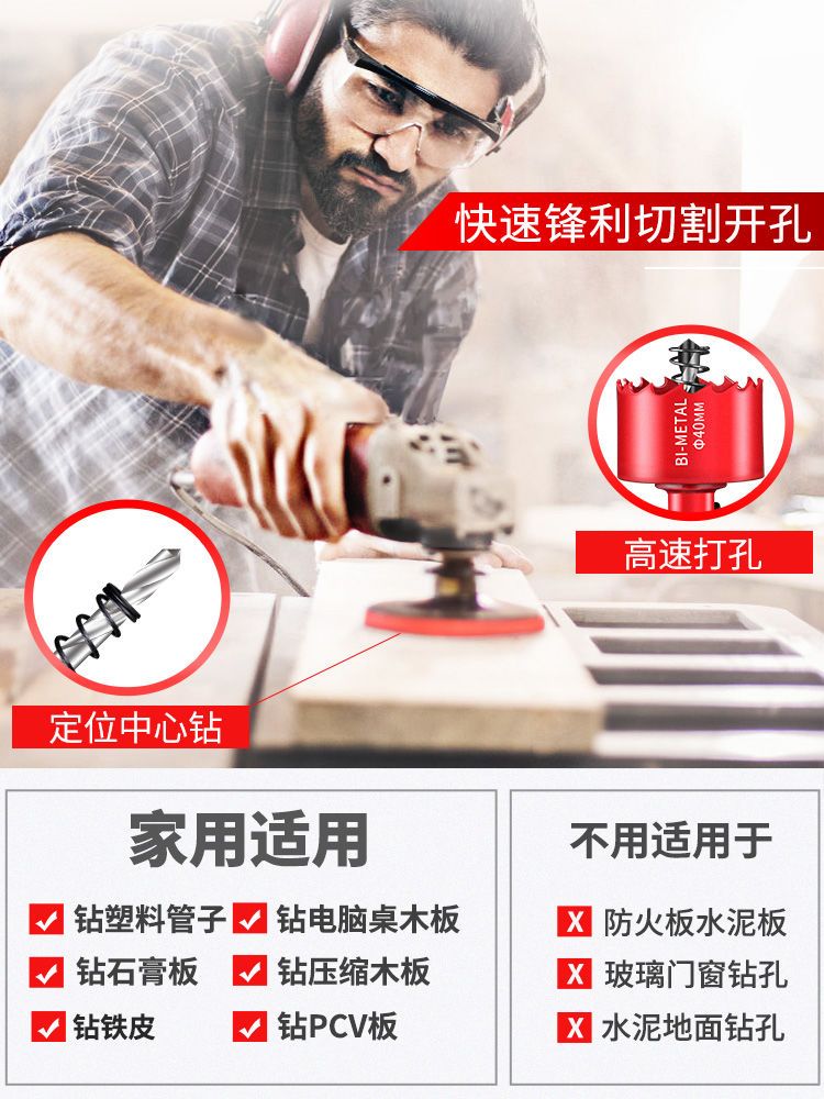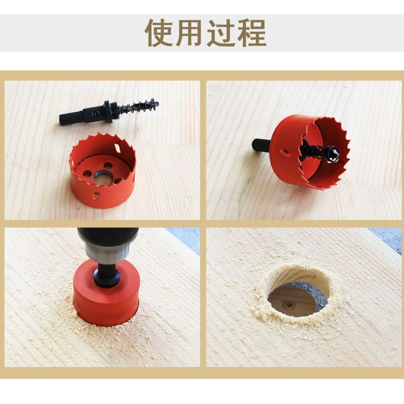 woodworking hole opener universal round hole bimetal hole opener gypsum board PVC plastic iron plate hole punching tool red bimetal ultra small four-piece set