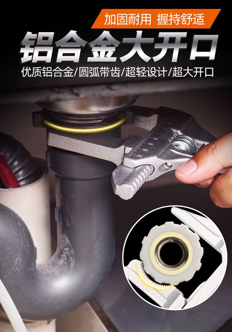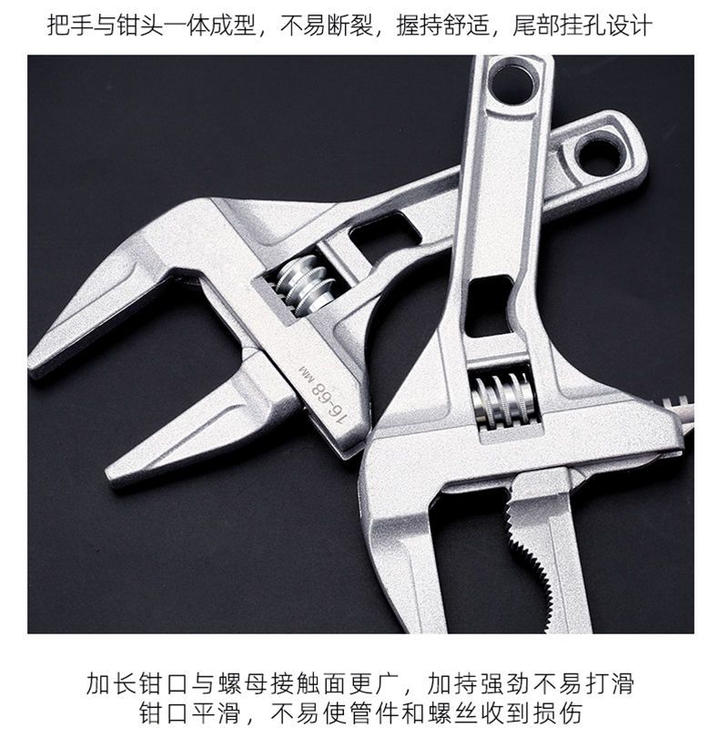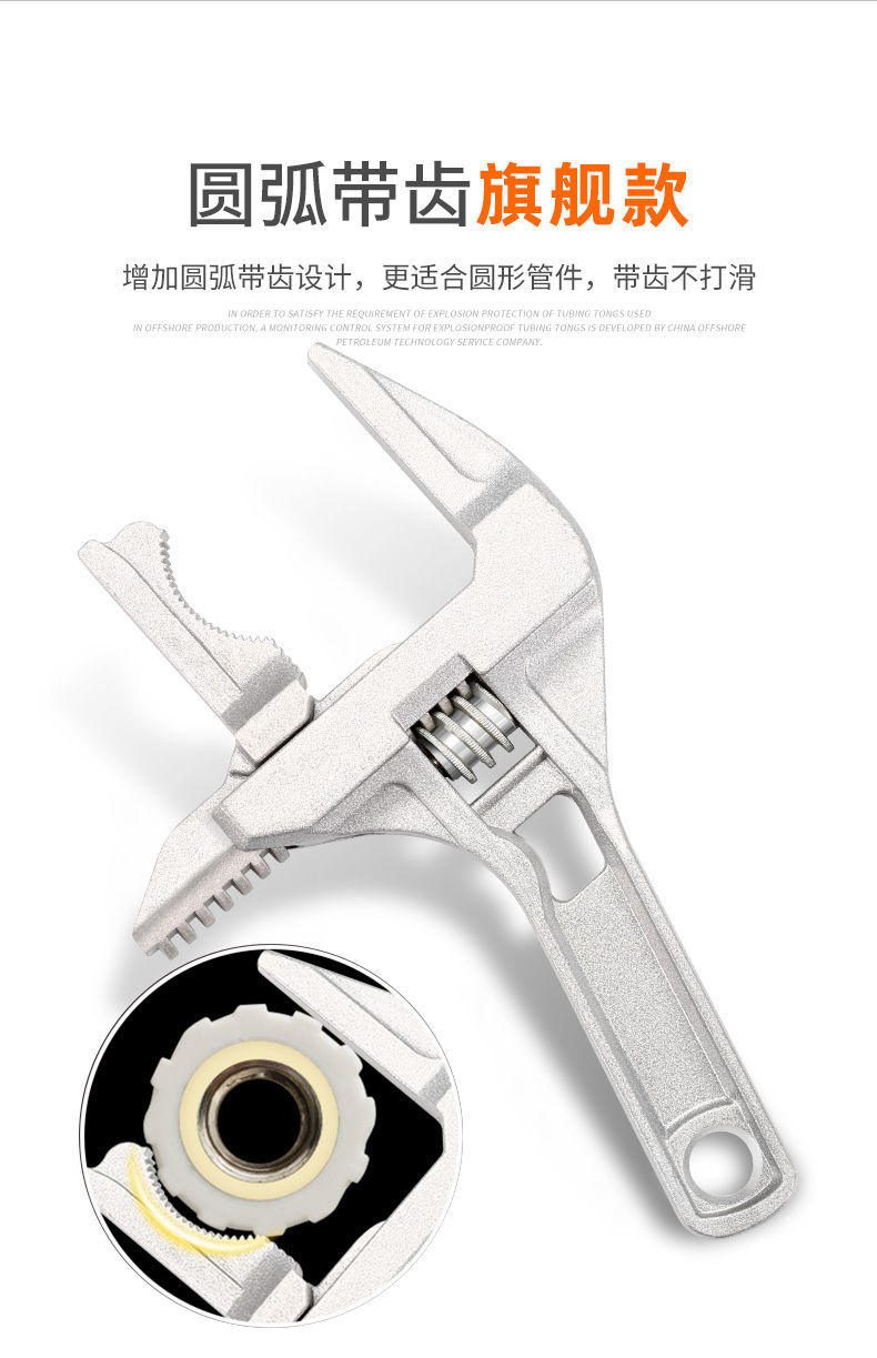 free shipping aluminum alloy bathroom wrench multifunctional flexible large opening movable mouth does not damage the pipe fittings upgraded removable arc double-sided teeth silver