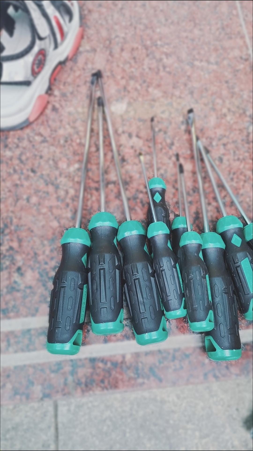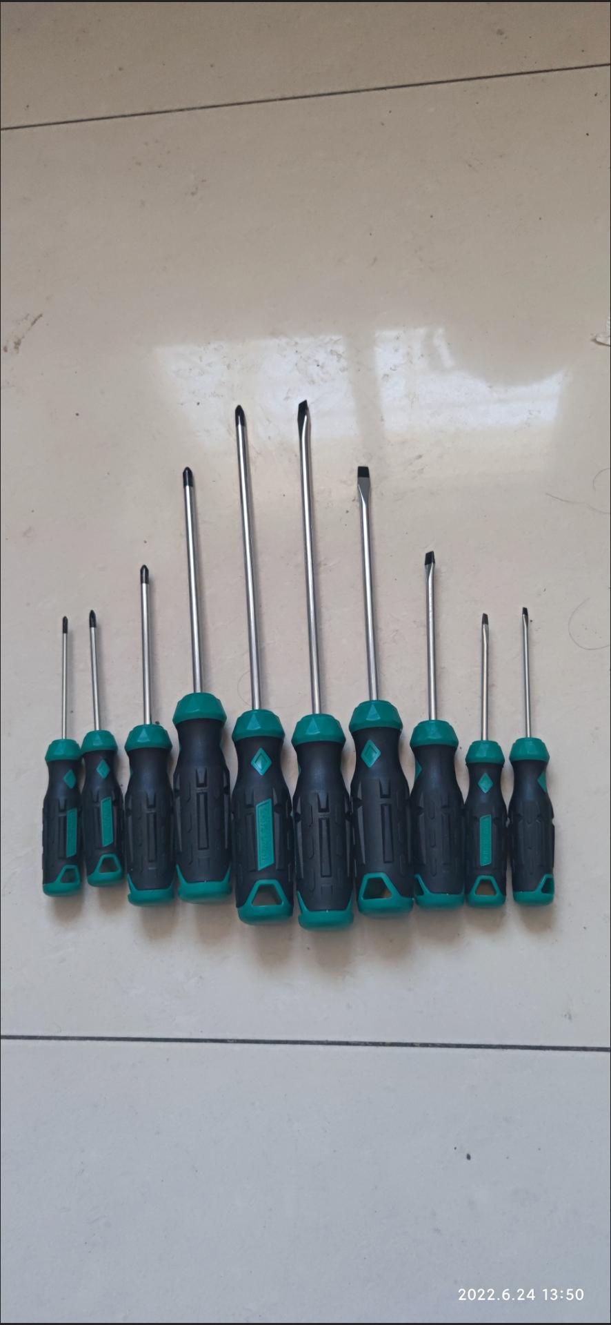 一套十把改锥从大到小收到了,感觉工艺精湛,做工精细,把柄是橡胶雕花式样,使用不打滑,政锥头是硬质合金且带有磁性,方便工作使用,让人爱不释手,客服也认真负责,有问必答,推荐购买全5分好评。
