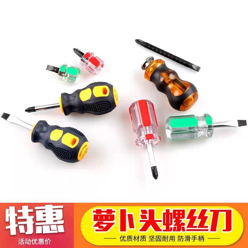 carrot head mini screwdriver dual-purpose short batch head short mushroom head short batch head cross short handle short handle screwdriver [massage handle with magnetic type [cross two sets]