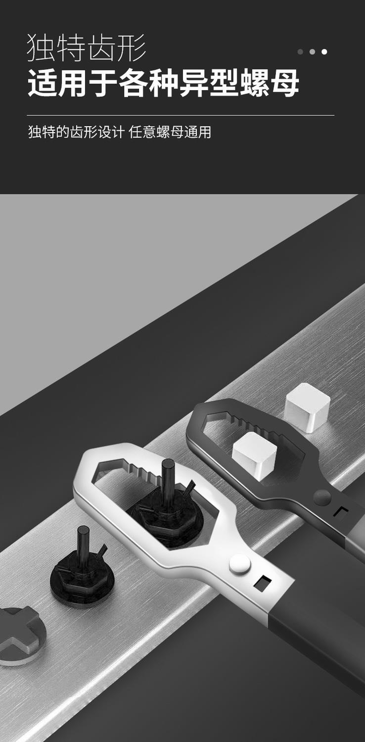 germany imported multi-function universal quick self-tightening wrench double-head plum blossom glasses wrench movable wrench multi-purpose universal self-tightening wrench (6-22 mm silver) rubber handle
