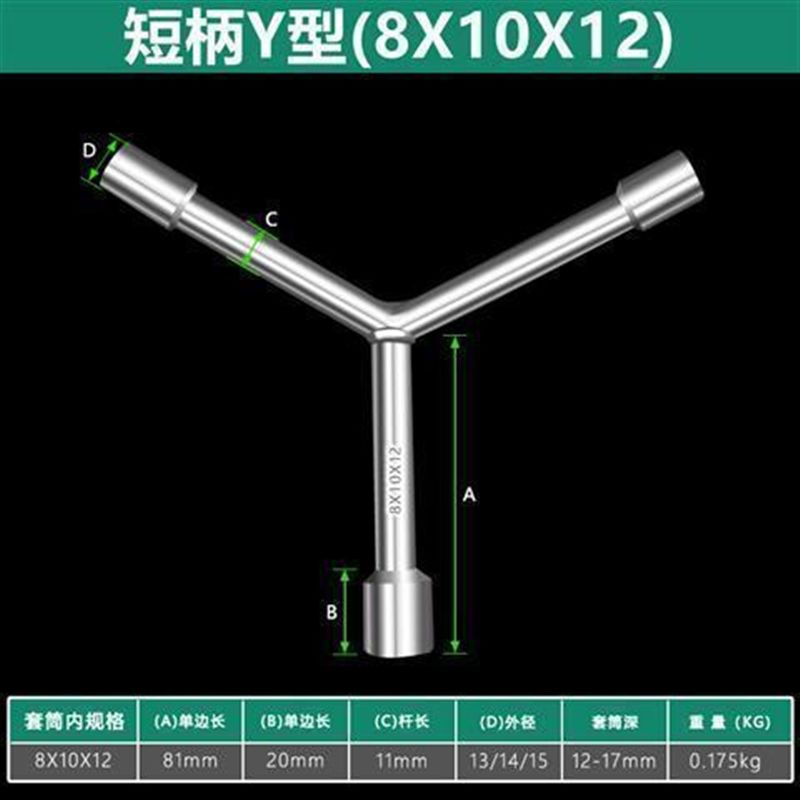 manual socket wrench tool three-prong wrench Y type tire auto repair mechanic wrench hexagonal motorcycle wrench short [8 +10+12】
