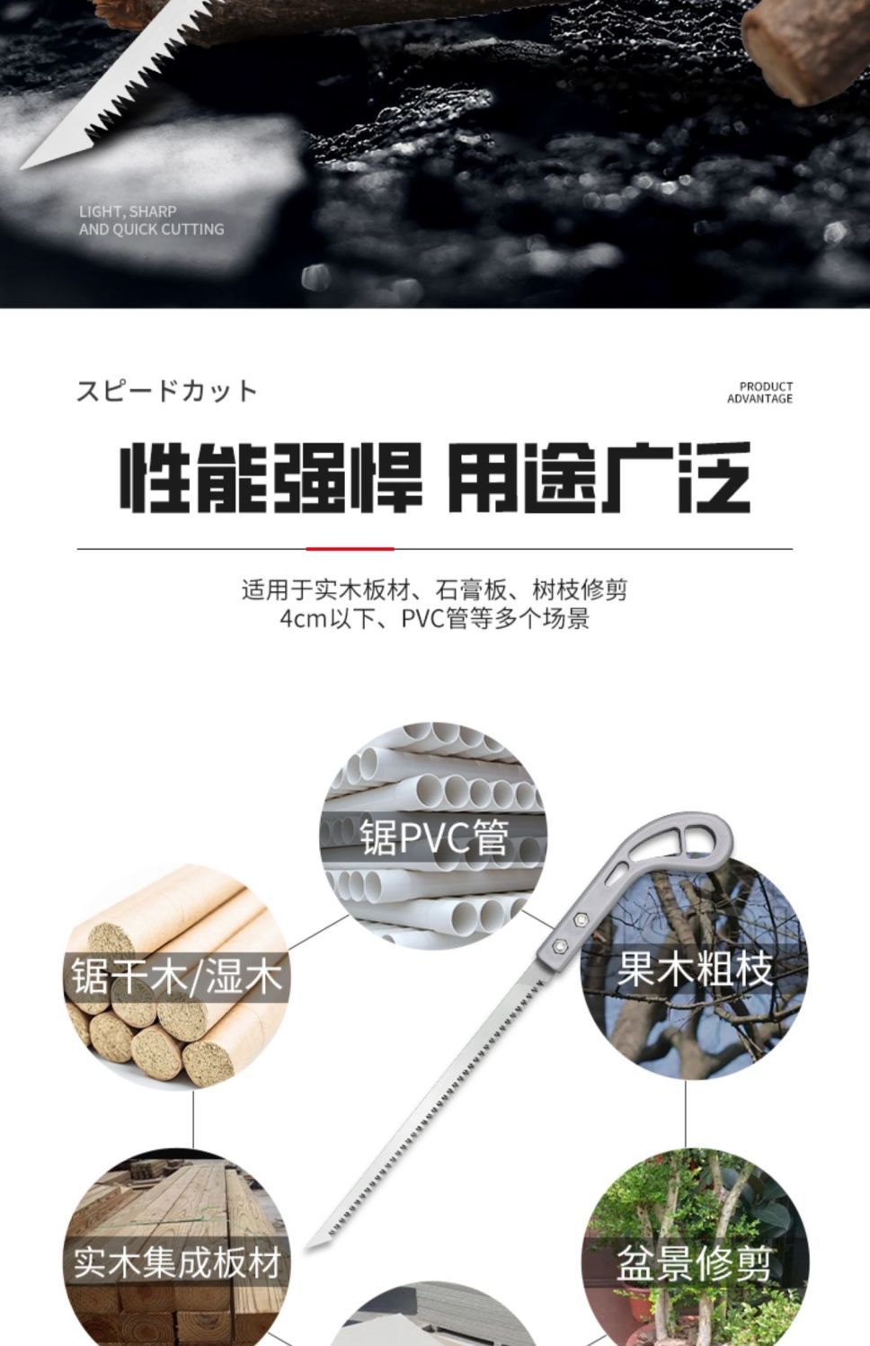 锯子很锋利,使用很省力,造型美观,锯木头挺快的先,小巧方便实用,锯起来很快又很省力,值得推荐,