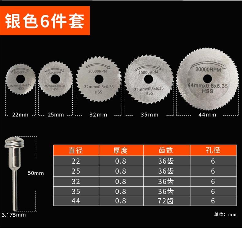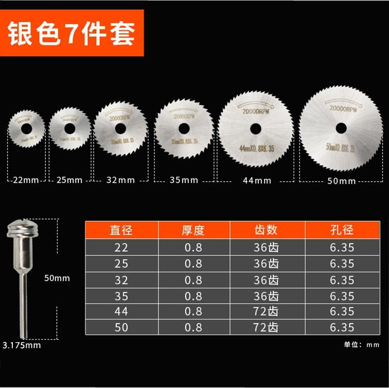small saw blade high speed steel circular saw blade mini plastic woodworking metal hand drill electric grinder cutting blade connecting rod high speed steel 7-piece set [silver]
