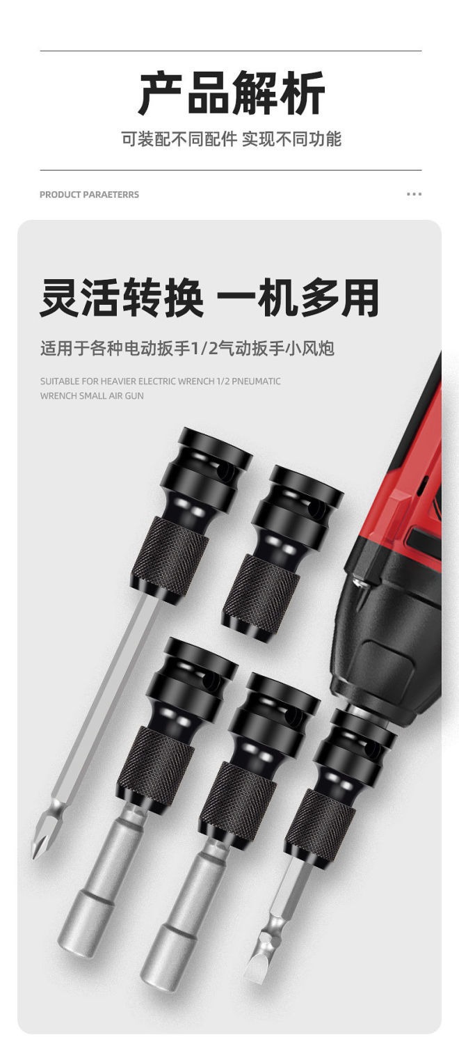 electric wrench conversion head socket to screwdriver universal adapter to hexagon screwdriver telescopic sleeve accessories telescopic adapter 2 sets [with leather ring and pin].