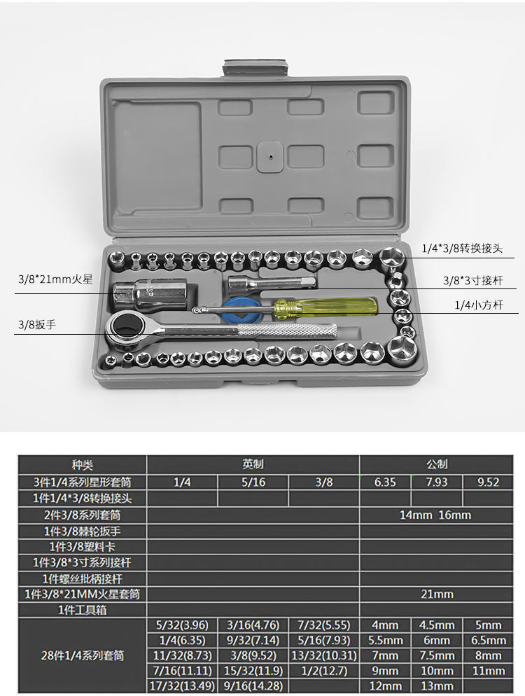 40socket wrench ratchet wrench hexagon combination set car motorcycle repair tool 40-piece tool set