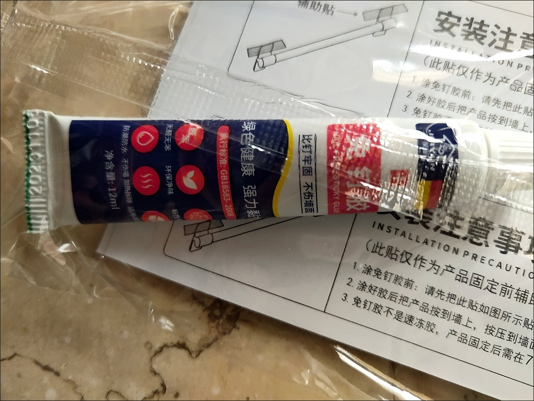 东西很好,很粘的,这根角条之前用了别家的免钉胶,没粘牢,昨天下午重新用了你们家的免钉胶,今天看看完全粘牢了,还送了4片铺助贴,点赞!