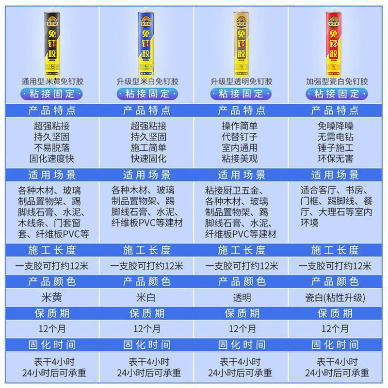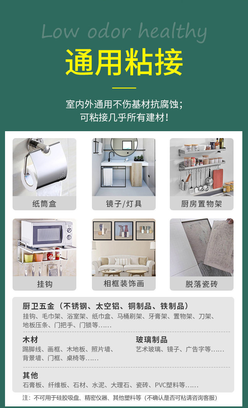 免钉胶收到了,物美价廉,经济实惠,质量很好,用起来很好。质量粘度都可以,没有异味。此商商家值得拥有,值得信赖,值得购买,值得推荐。