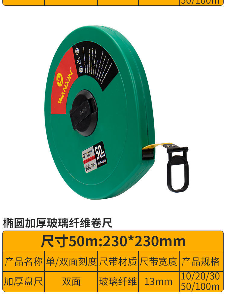 imported fiber tape measure 10 meters 20 meters 30 meters 50 meters engineering measurement ruler high precision rubber disc ruler box ruler 10 meters [upgraded version] thickened ruler tape