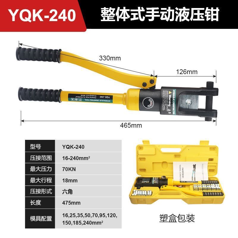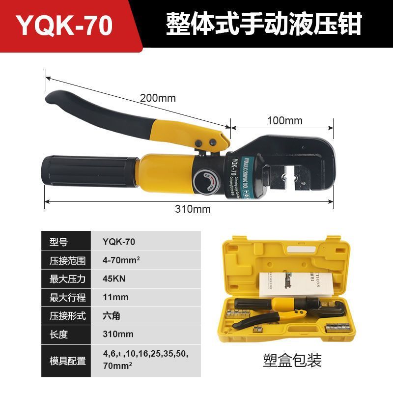 yuhuan hydraulic pliers manual hydraulic crimping pliers copper aluminum nose cold end electrician pressure mouth pliers for construction site wiring YQK-70