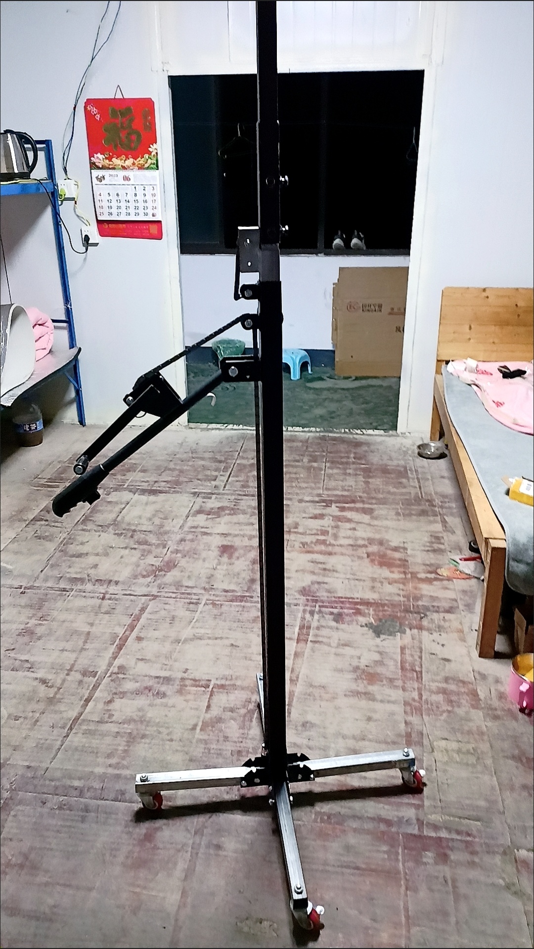 收到了,四条腿,有一条腿有点不正需要校正,手压杆也有点不正