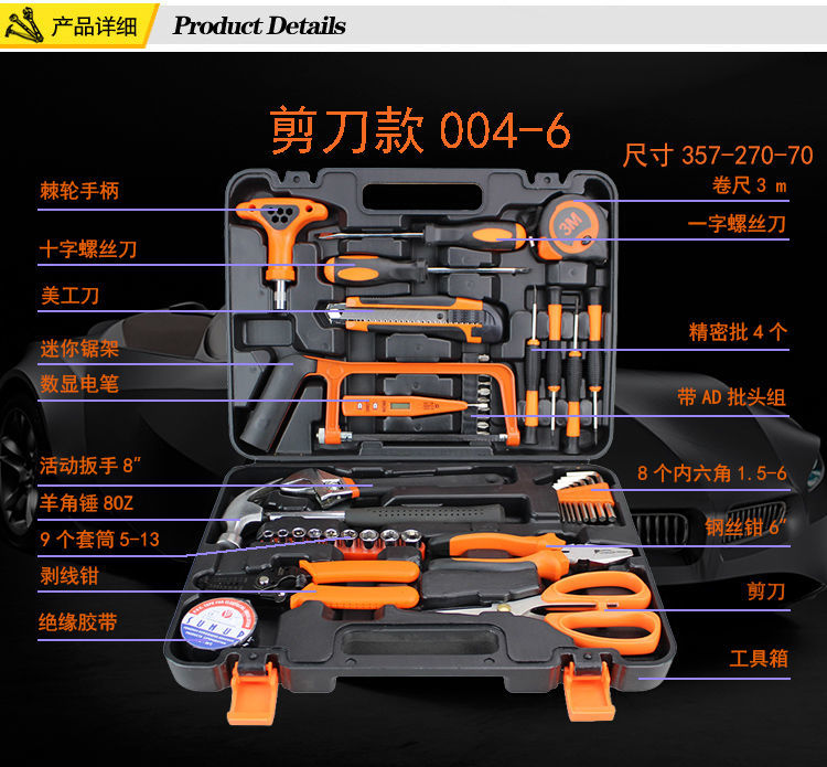 super cost-effective hardware tool set maintenance tool box multi-function combination tool set vehicle tool large 16-piece combination tool box
