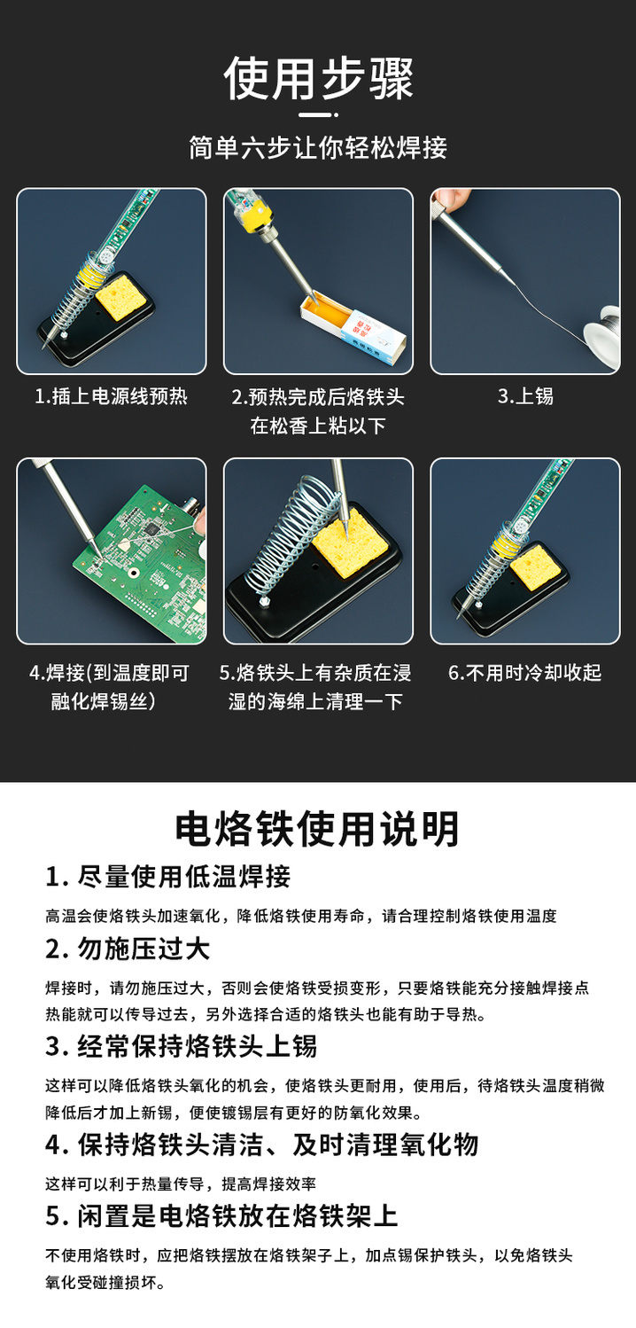 好用,刚刚焊了LED灯上的一个焊点!灯修好了,我是女生第一次用没经验费了点时间!不过还是修好了!烙铁不错升温很快!