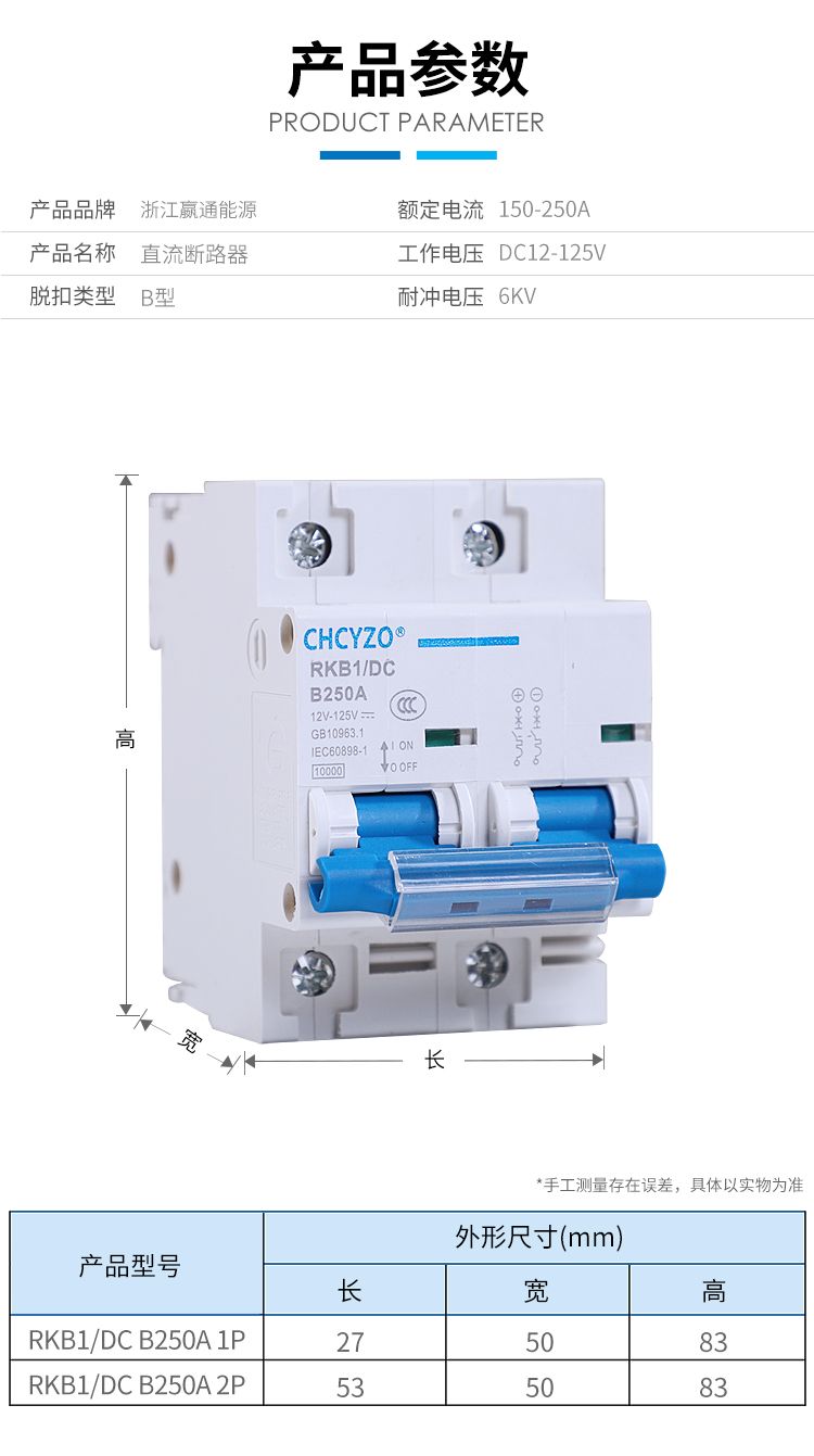 electric vehicle dc circuit breaker 12 V24V48V60V120V dc circuit breaker 150 A air switch 200 A250A63A+1P
