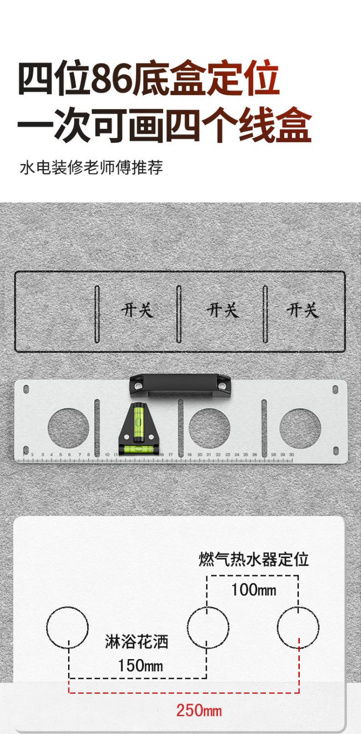 plumber 118 /86bottom box switch positioning tool bottom box template drawing tool with level ruler stainless steel 86 drawing tool (handle with scale)