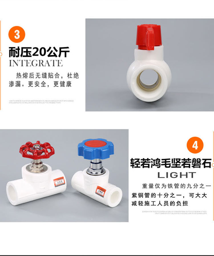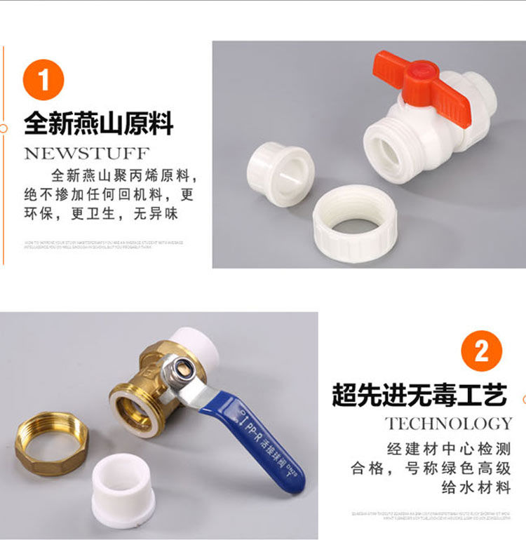 ppr water pipe accessories ball valve 4 points 20 pipe fittings 6 points 25 home decoration hot melt switch joint valve 1 inch joint hot melt full plastic flat ball valve +ppr20(
