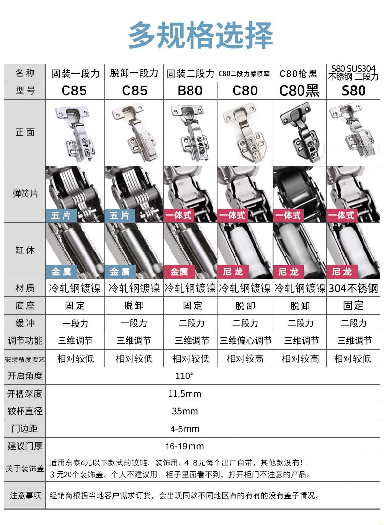 dongtai dtc hinge two-stage force C81 damping B80 hardware flagship S80 removal C80 door hinges: 10 pieces each, 9.5% discount automatically applied