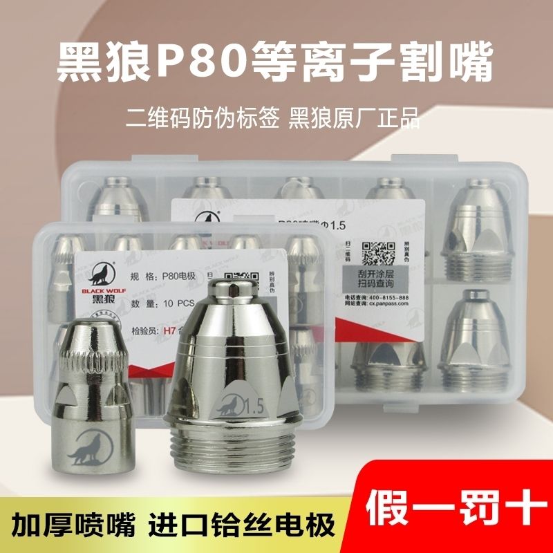 original black wolf P80 plasma cutting nozzle electrode cnc universal LGK80-120 gun nozzle +electrode 1.5 sets