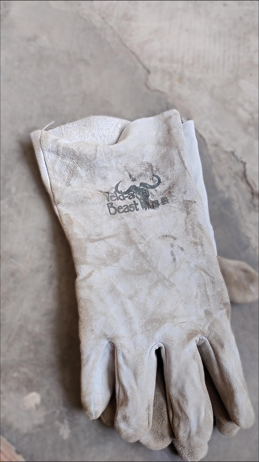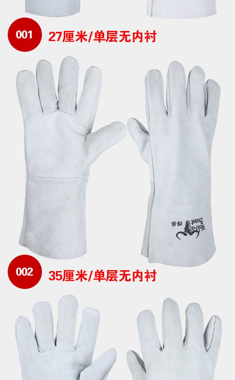 10double welding beast electric welding gloves cowhide anti-scalding welder gloves reinforced wear-resistant soft lengthened protective labor protection short single layer 25 cm 10 pairs 001
