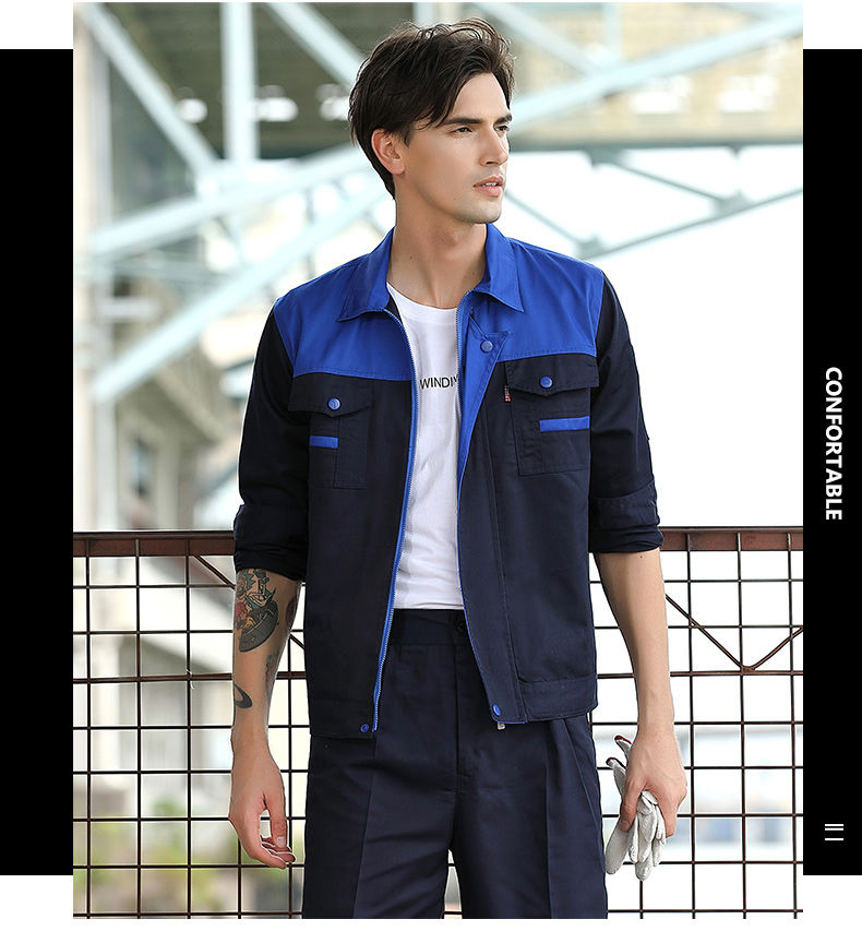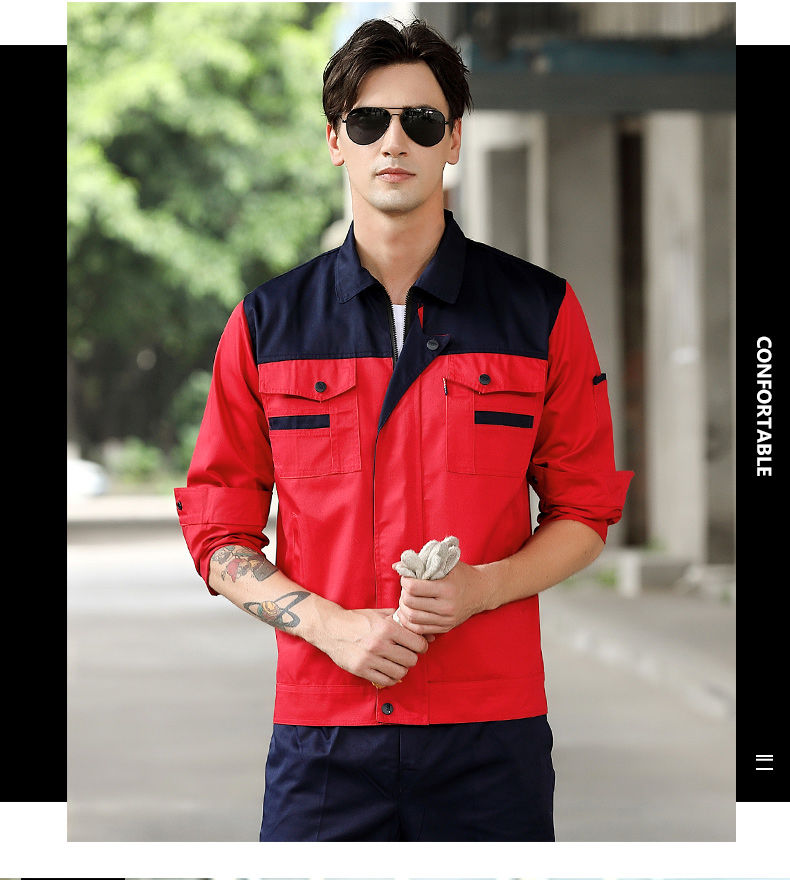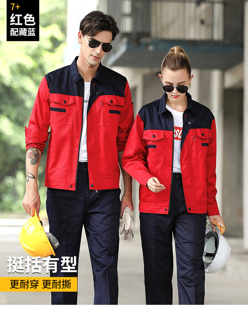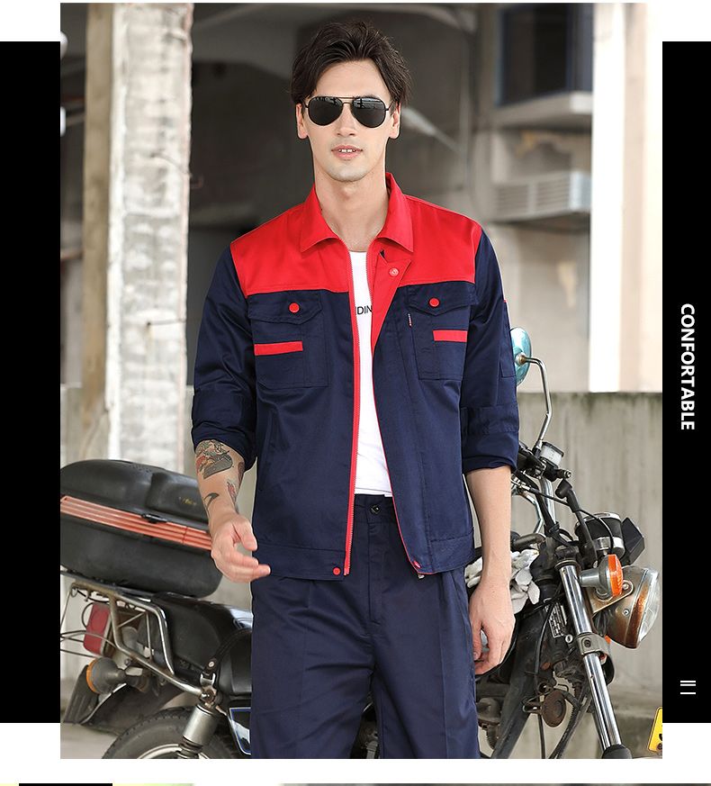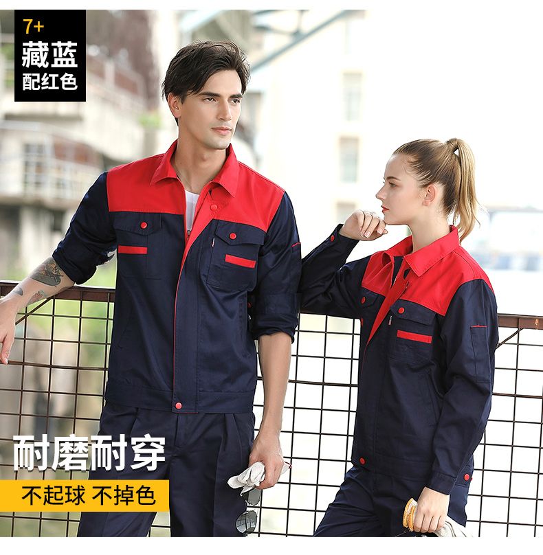 men's autumn and winter work clothes /jacket /super wear-resistant and breathable long-sleeved construction site uniforms, custom labor protection clothing, navy blue +red (suit) +160/S( suggestion