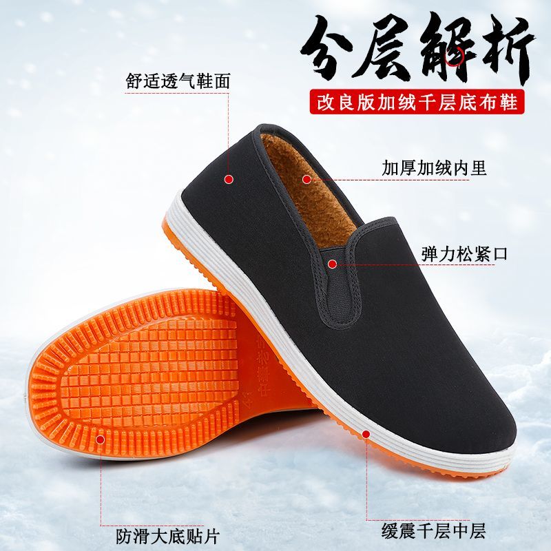 plush cotton shoes, thick tire soles, cloth shoes for men, old beijing cloth shoes, men's non-slip and wear-resistant old eighth road thousand-layer sole cloth shoes [2 pairs] thick tire soles [broken soles are guaranteed to be replaced] +35