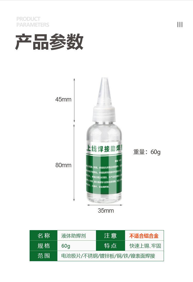 flux strong multifunctional no-cleaning solder liquid rosin battery nickel sheet zinc plate strong solder water flux 60 g【1 bottled】