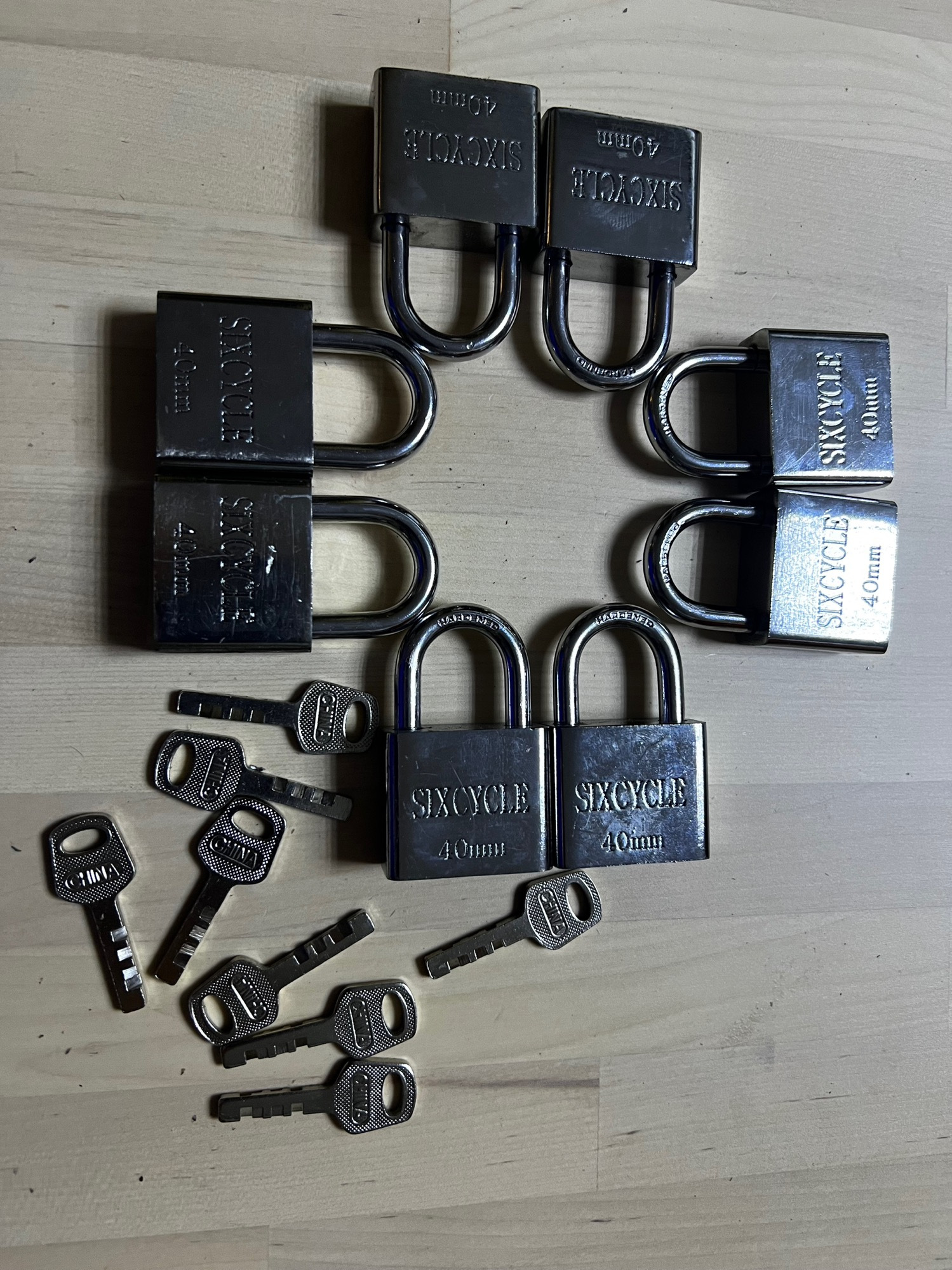 做工不错,一把钥匙通开8把锁。拿手上沉垫垫的,分量十足。