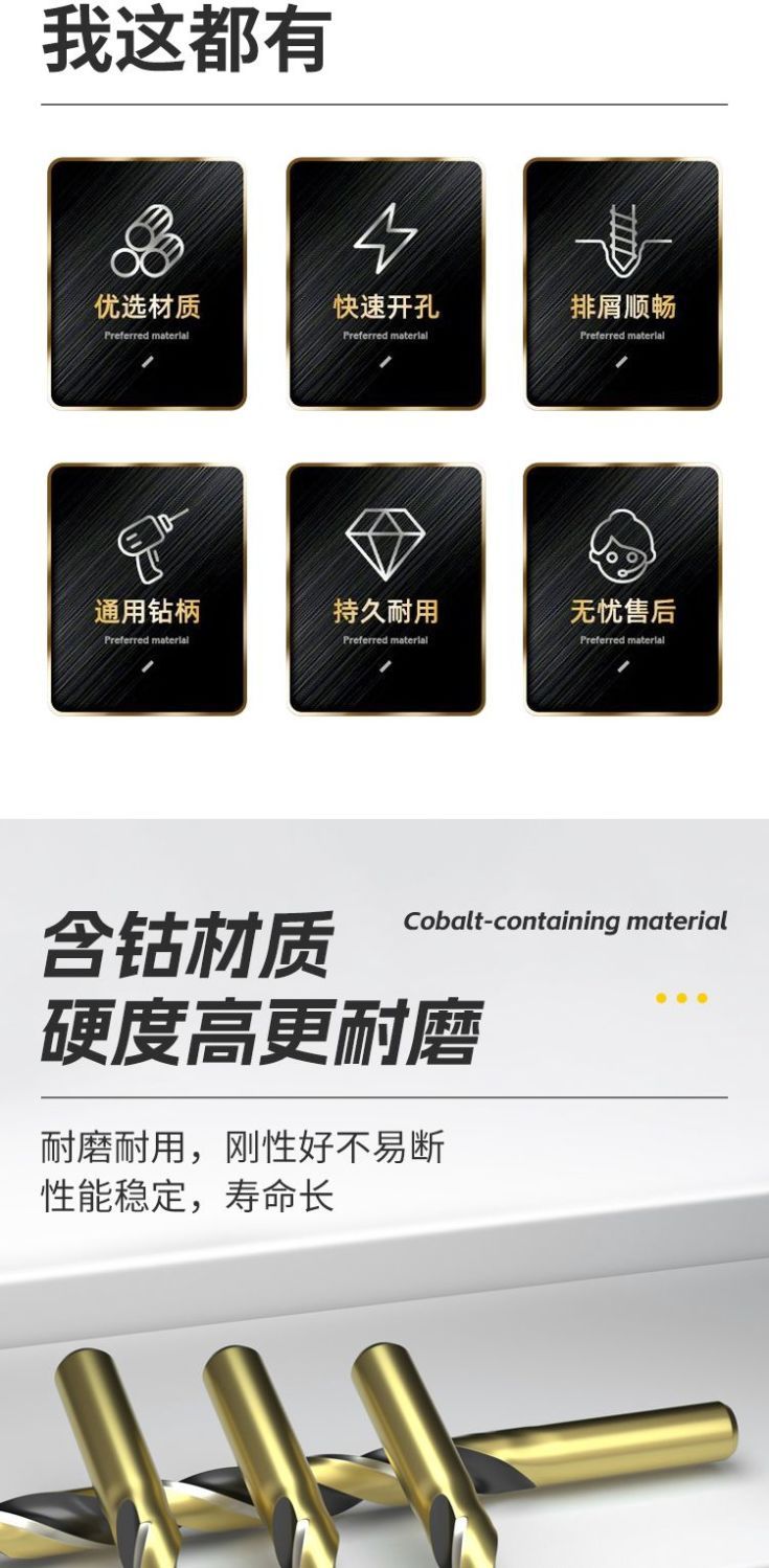 twist drill bit M43 cobalt-containing stainless steel special rotary drill bit for drilling iron metal holes with high hardness straight handle drill full set clearance 99991 pieces M43 stainless steel drill bit +【3/4/5】1 each - limited to 16 pieces