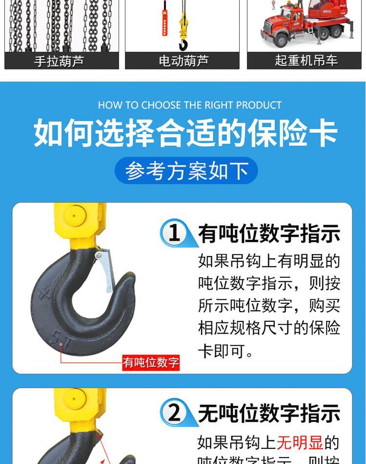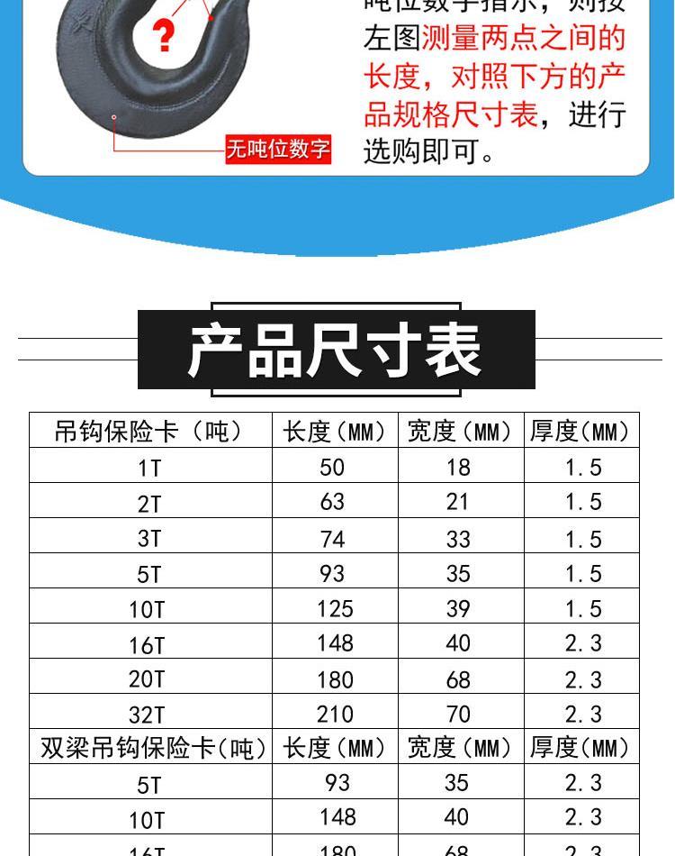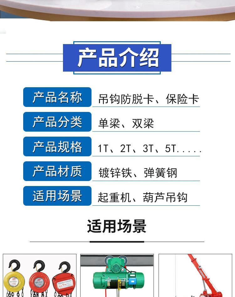 electric hoist crane 1 T-100T hook insurance card driving hook safety card anti-drop buckle device 3 tons ordinary insurance card