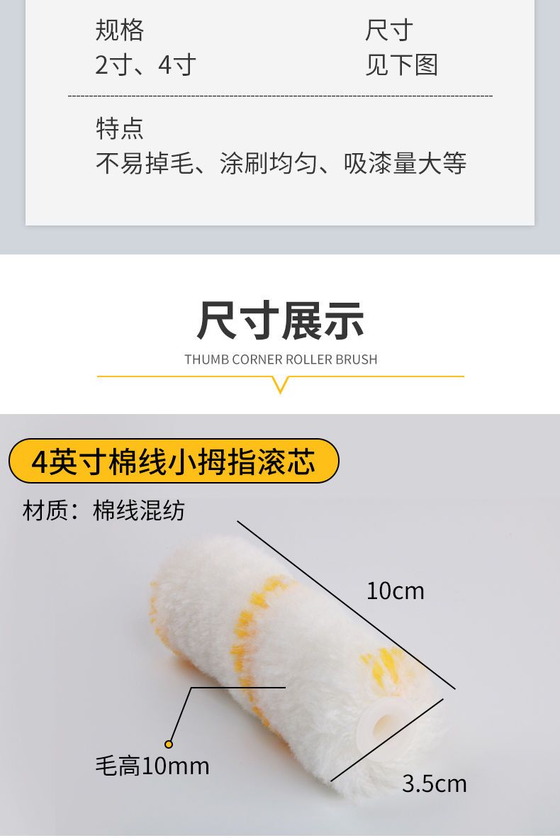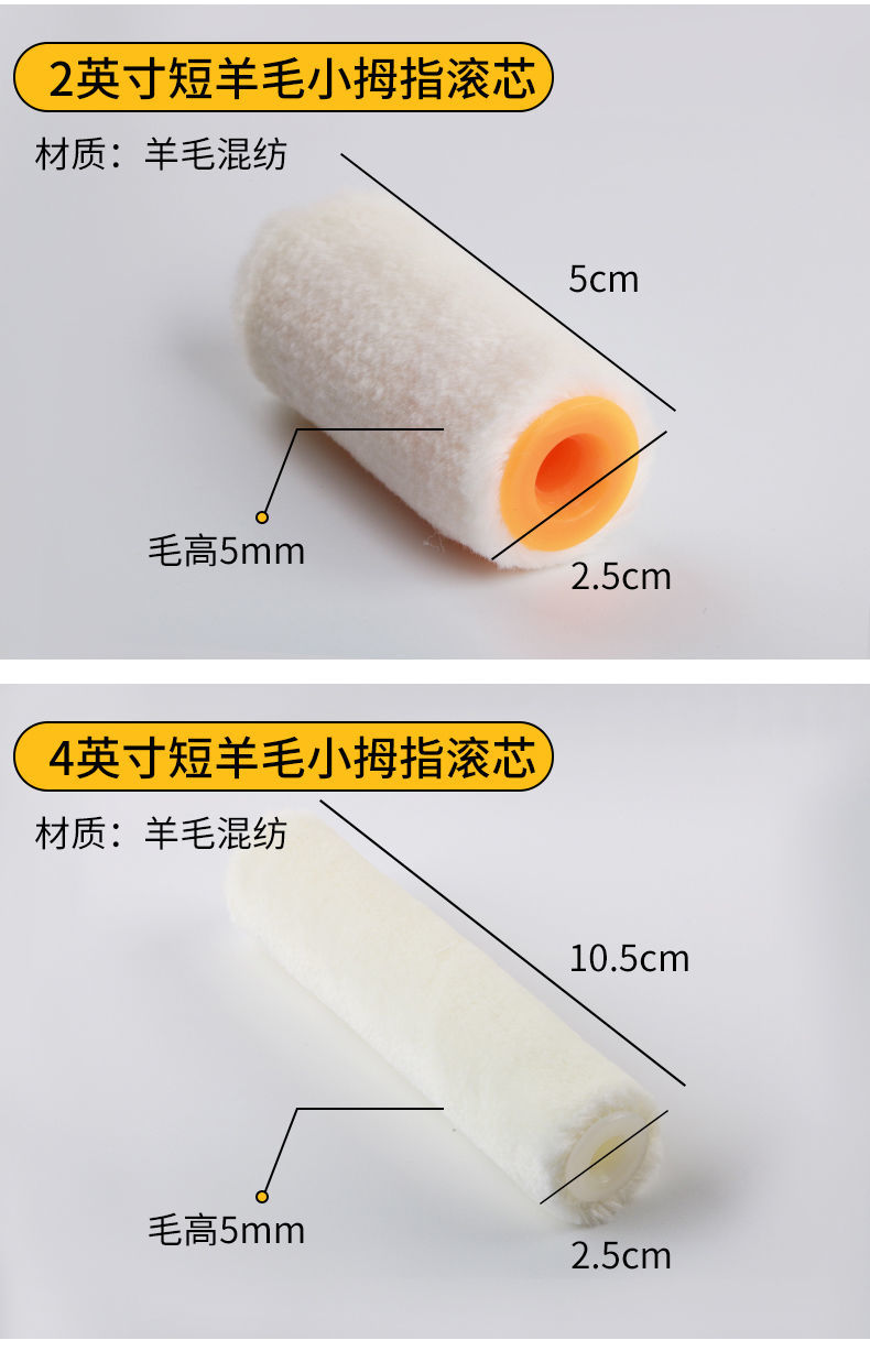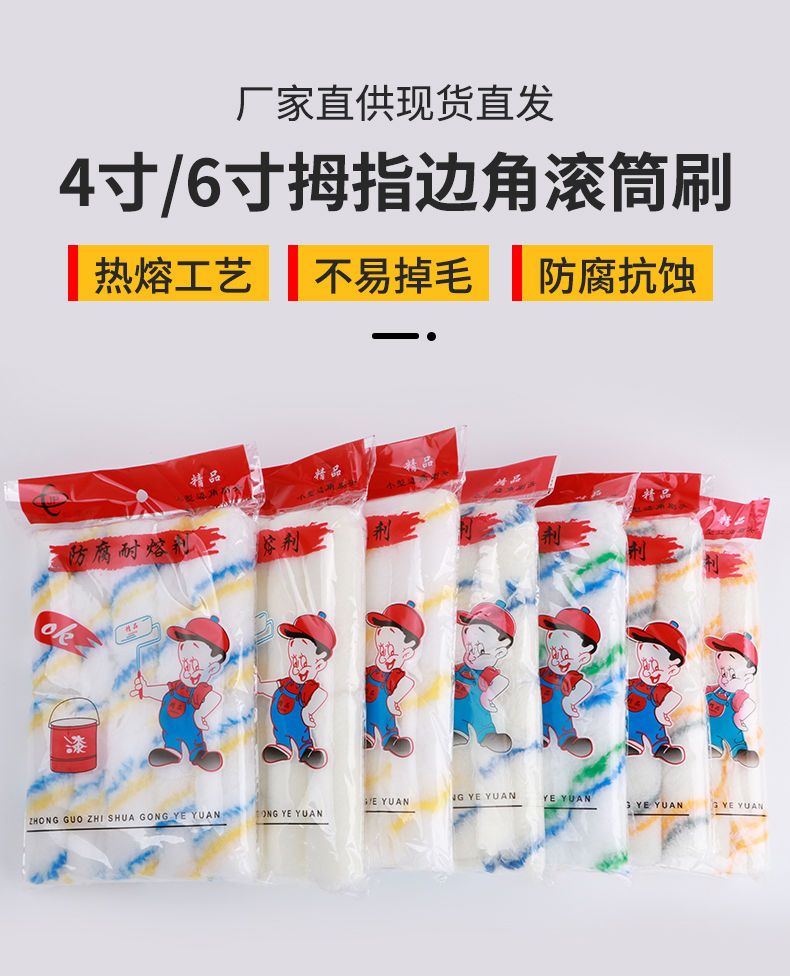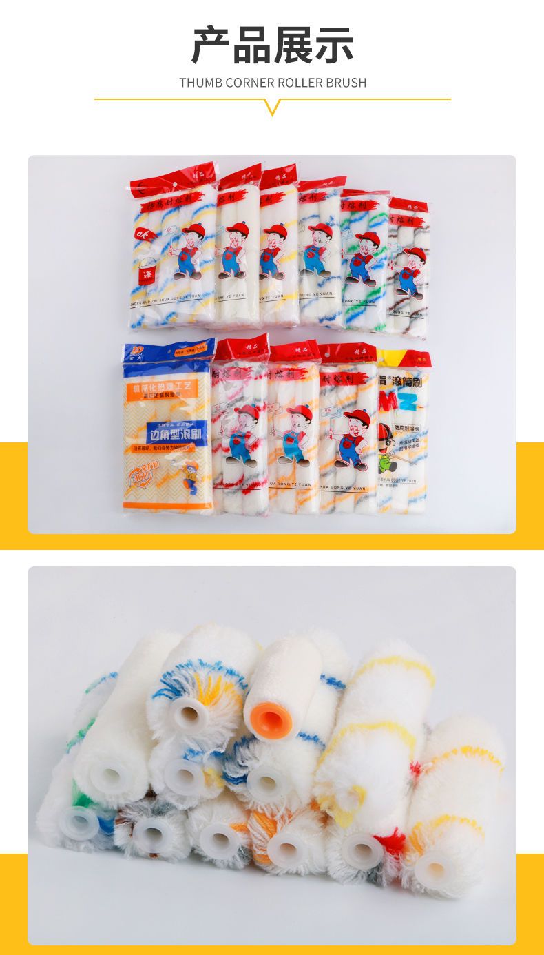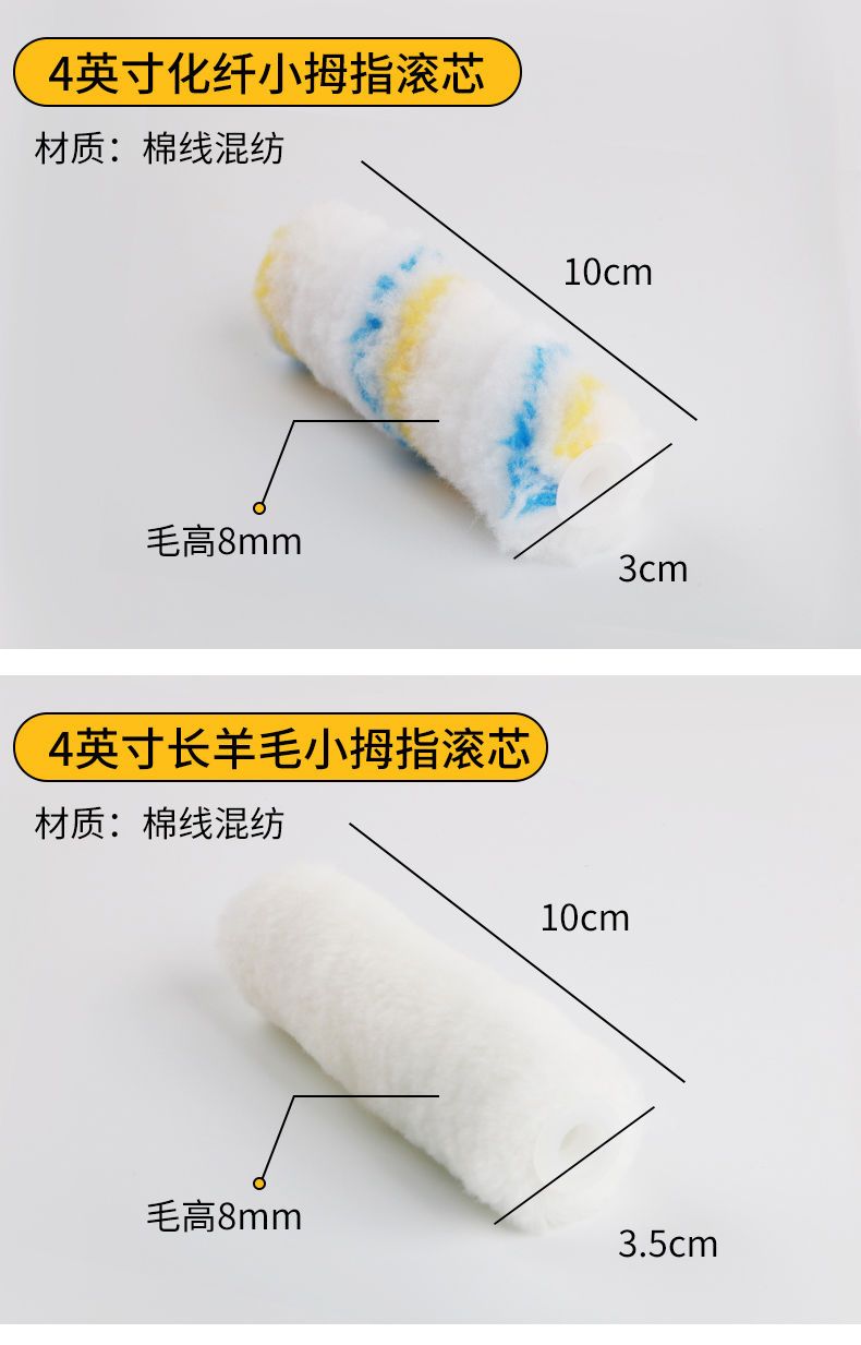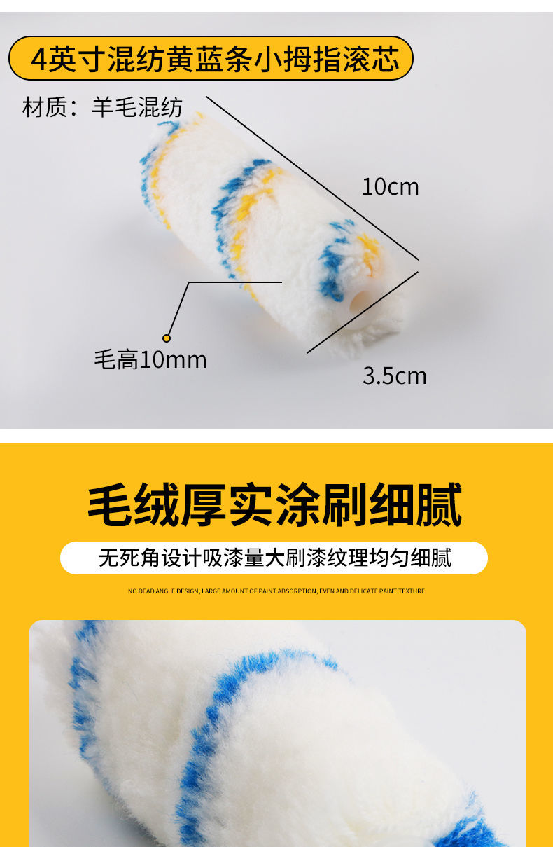 roller brush solvent resistant 4 /6/8/inch little finger core paint coating latex paint mini 4 inch boat brush trimming brush 4 inch chemical fiber yellow blue little finger +10pcs (1 handle included)