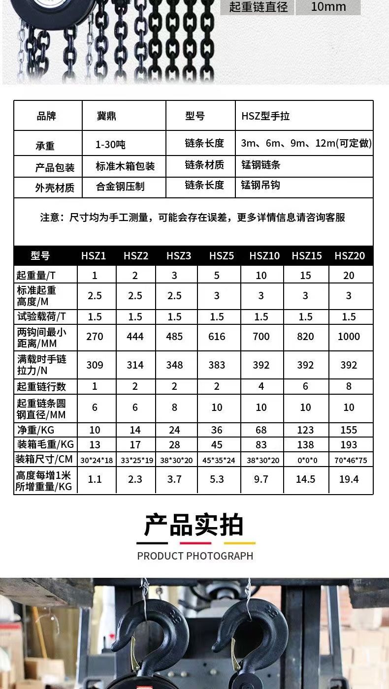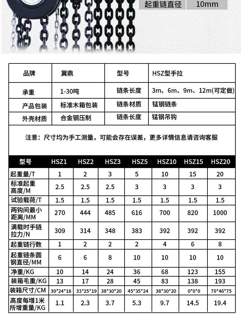 lifting artifact hand-cranked hoist hoist catenary chain crane circular triangle type 3 meters lifting chain actual 2 meters +1ton