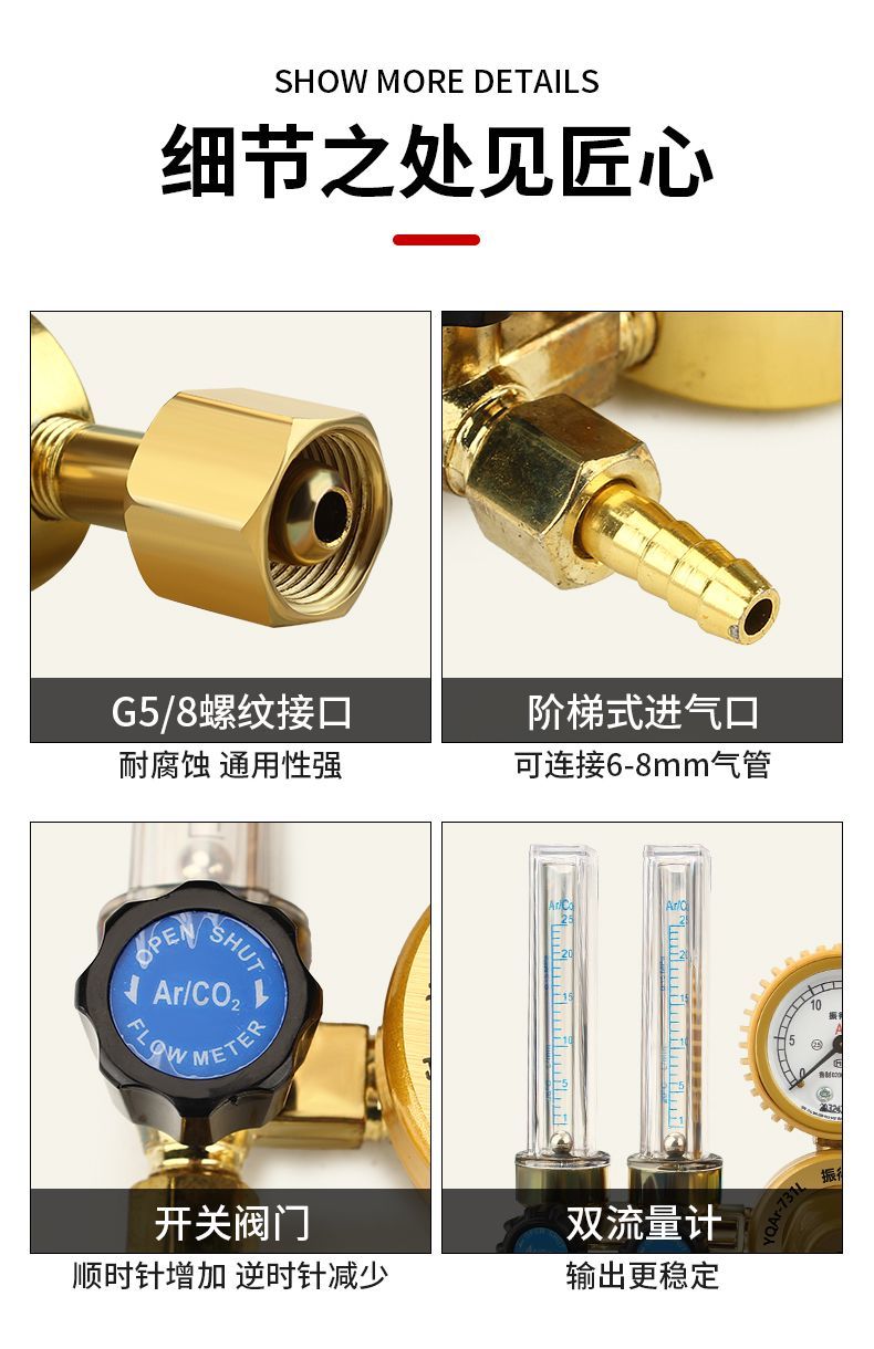 argon gas pressure reducing valve dual flow meter pressure reducing gauge shockproof YQ731L single tube energy-saving pressure gauge argon arc welding machine accessories double tube flow meter argon gas meter
