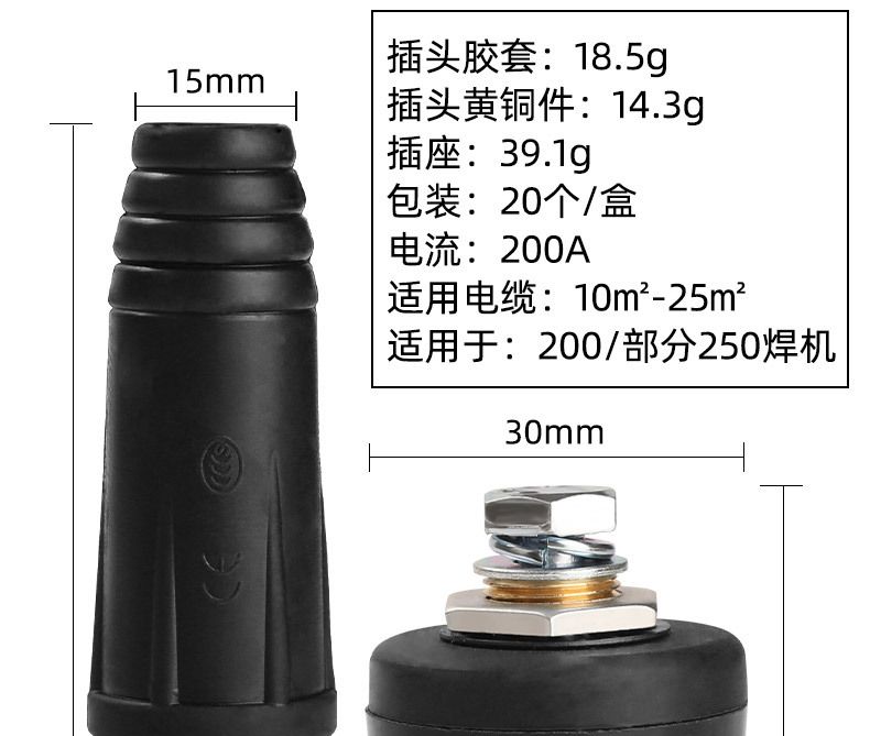 electric welding machine quick connector pure copper plug european welding handle wire quick plug DKJ10-2535-50-70 socket accessories 10-25 plug black