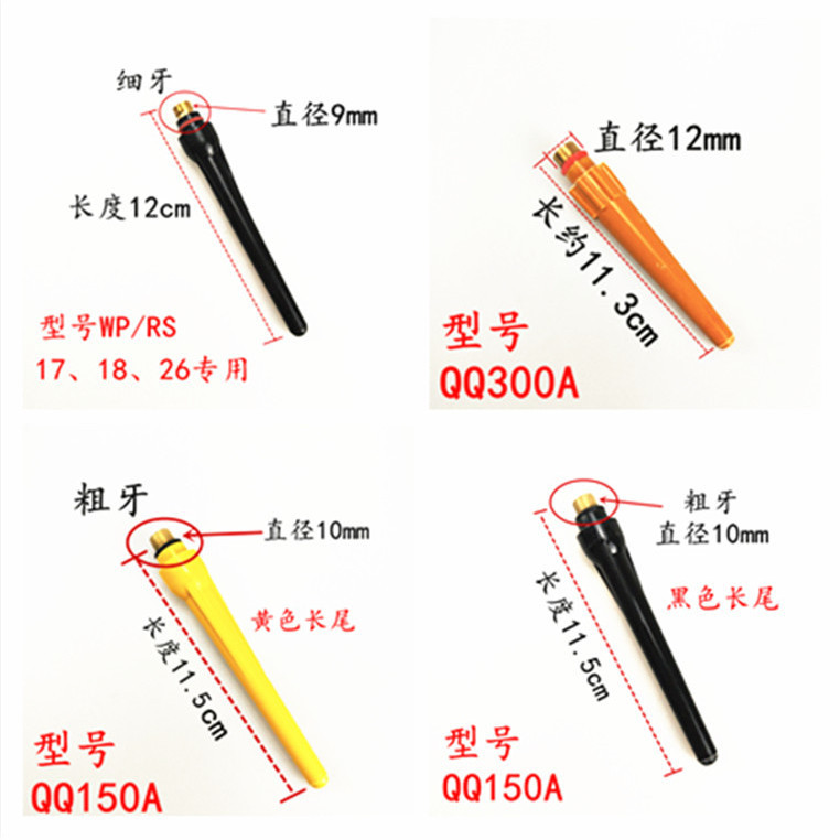 QQ150A argon arc welding machine welding gun accessories tungsten needle long pressure cap gas cap gun tail pressure rod tungsten needle gun head universal 150 A yellow spear tail